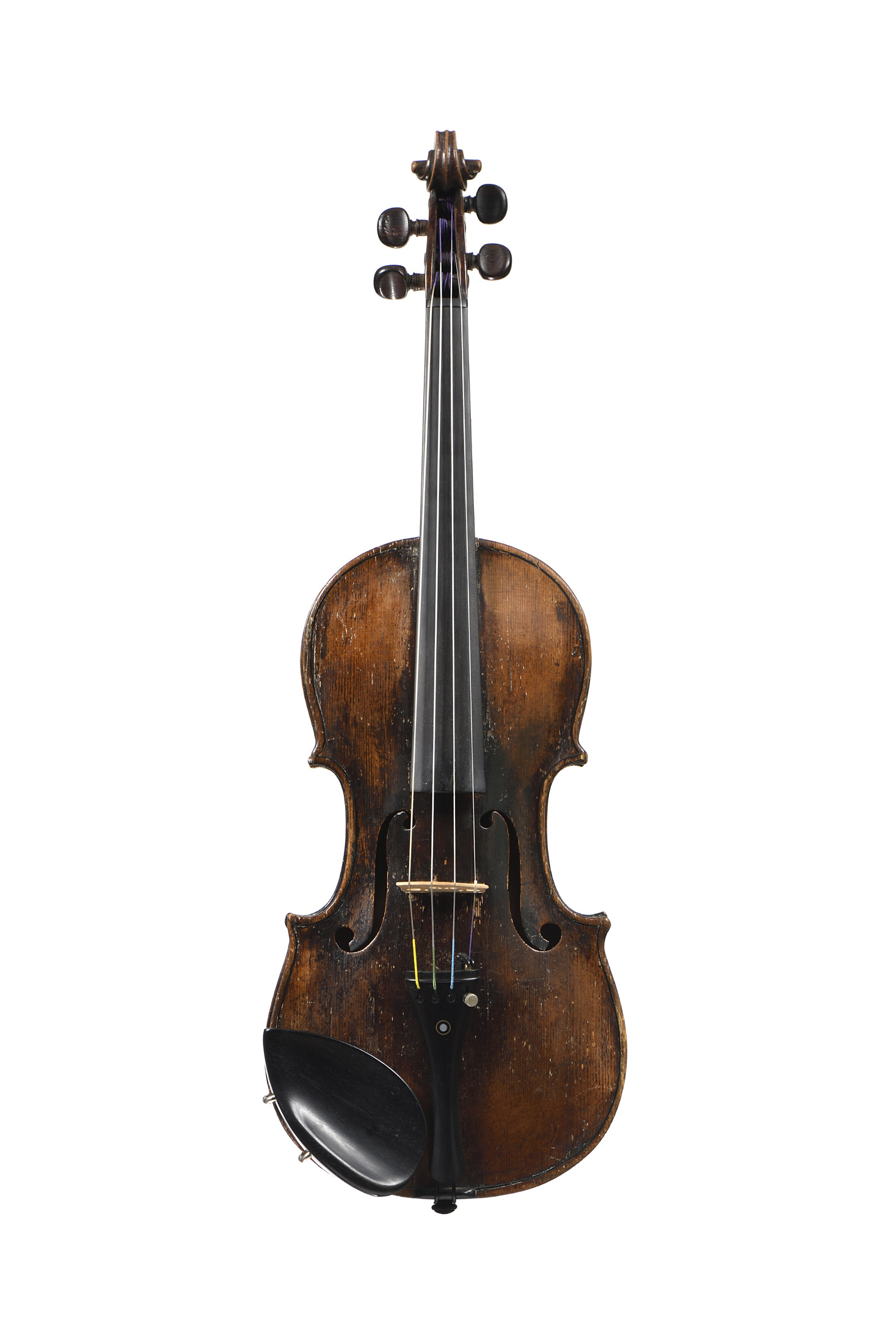 portant une étiquette apocryphe, manuscrite "Sebastian Kloz". Fond de deux pièces en érable sans ondes. Vernis brun sur fond doré. 360 mm.