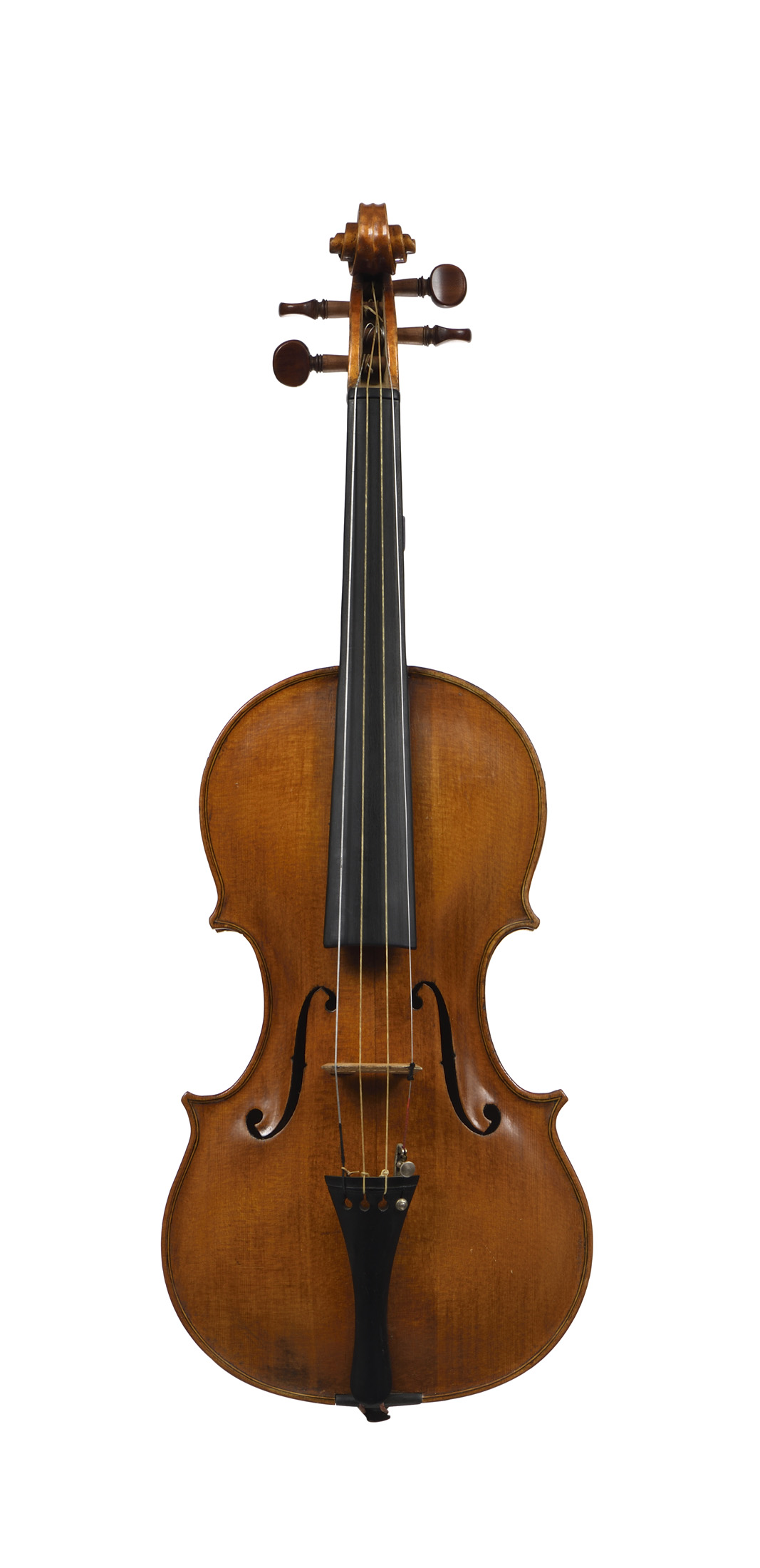 Intéressant violon portant une étiquette de "PANIZZI Giovani Baptista 1937" avec une marque manuscrite sur l'éclisse du haut. Fond de deux pièces. Vernis brun doré. 360 mm.