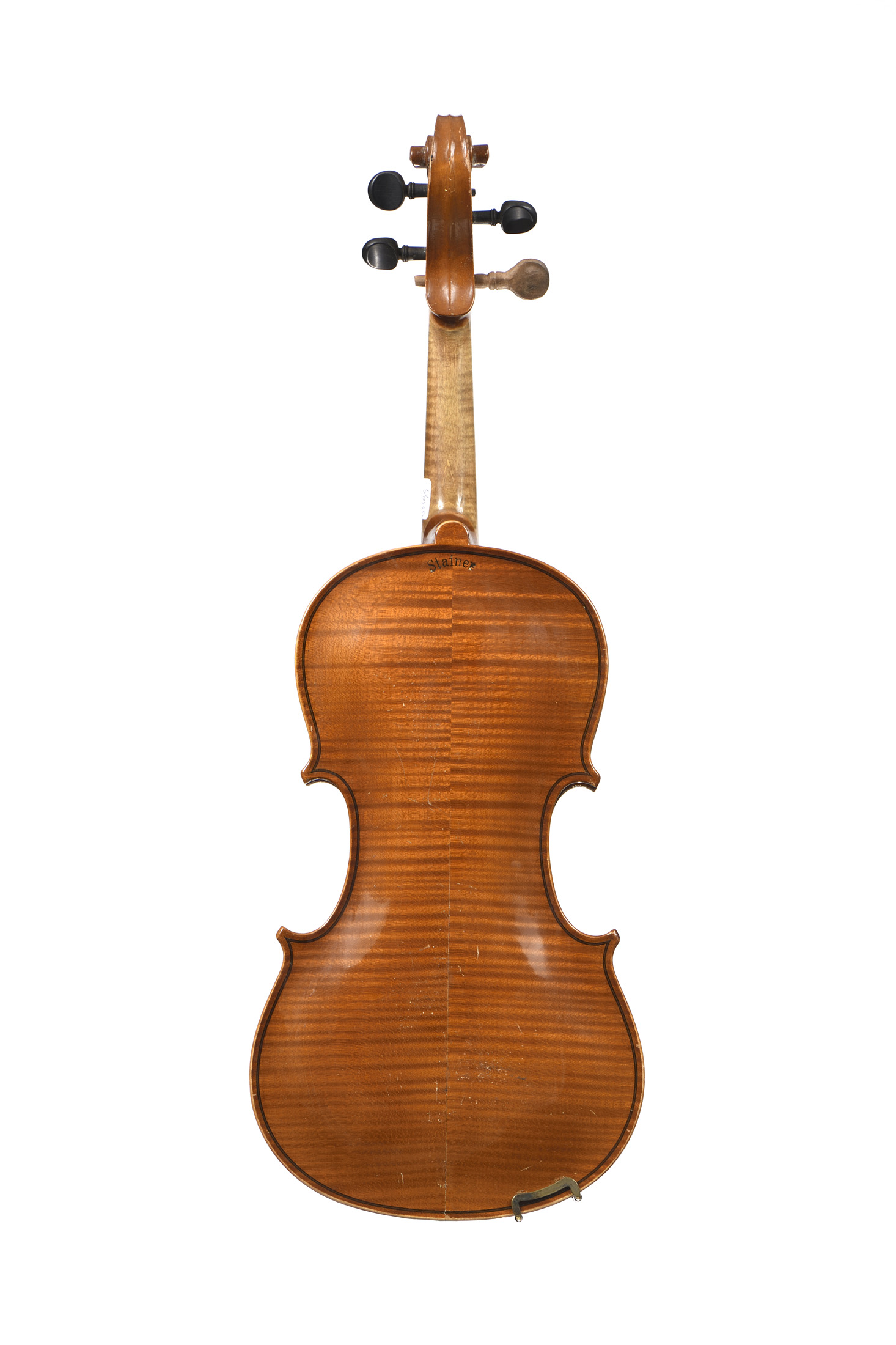 portant une marque au fond STAINER. Fond de deux pièces en érable. Joint du fond recollé. Vernis brun doré. Cassure d'âme à la table. 357 mm.