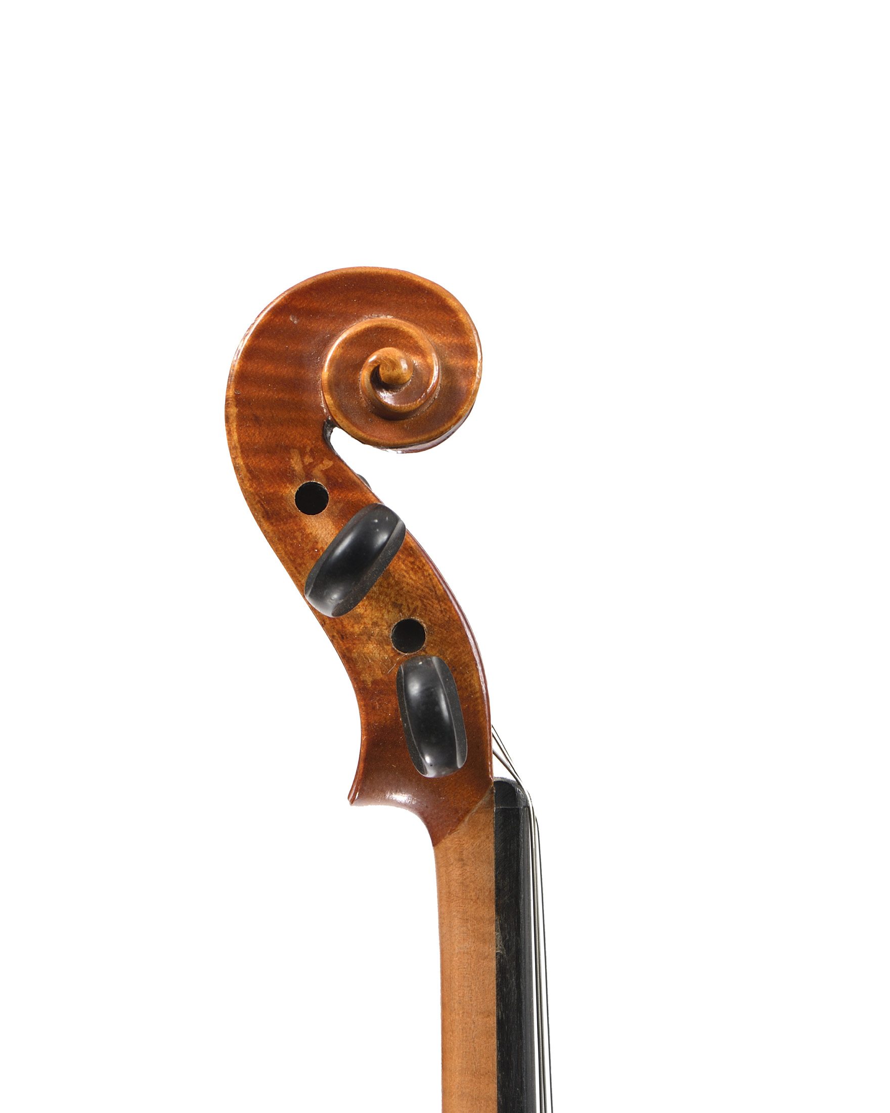 dont il porte l'étiquette " Antonius Stradiavrius... Made in Czechoslovakia.". Fond de deux pièces en érable. Vernis brun orangé sur fond doré. Avec boite et deux archets. 358 mm.