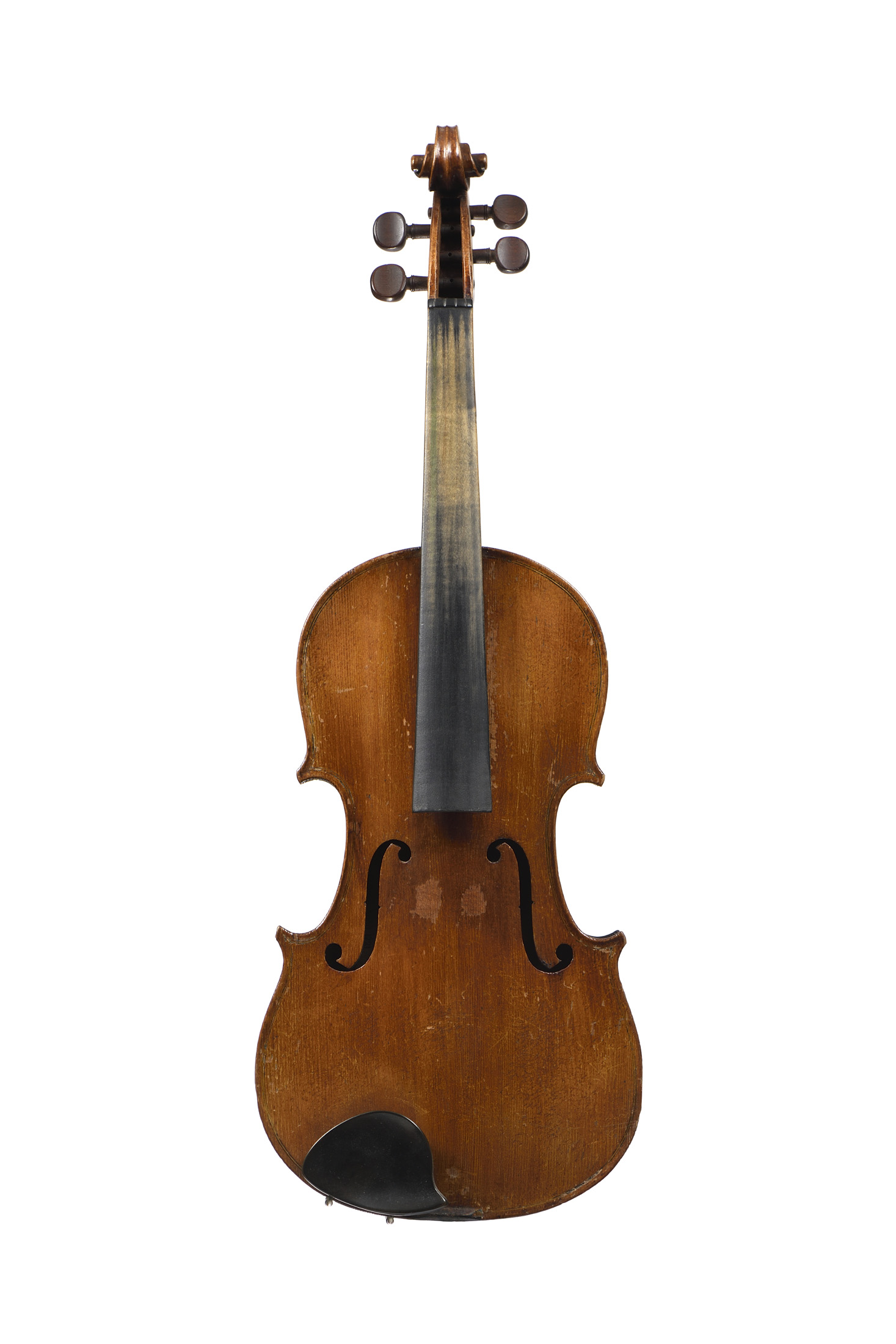 portant une étiquette " Copie de Antonius Stradivarius...". Fond de deux pièces. Vernis brun sur fond doré. 358 mm. Avec boite et deux archets.