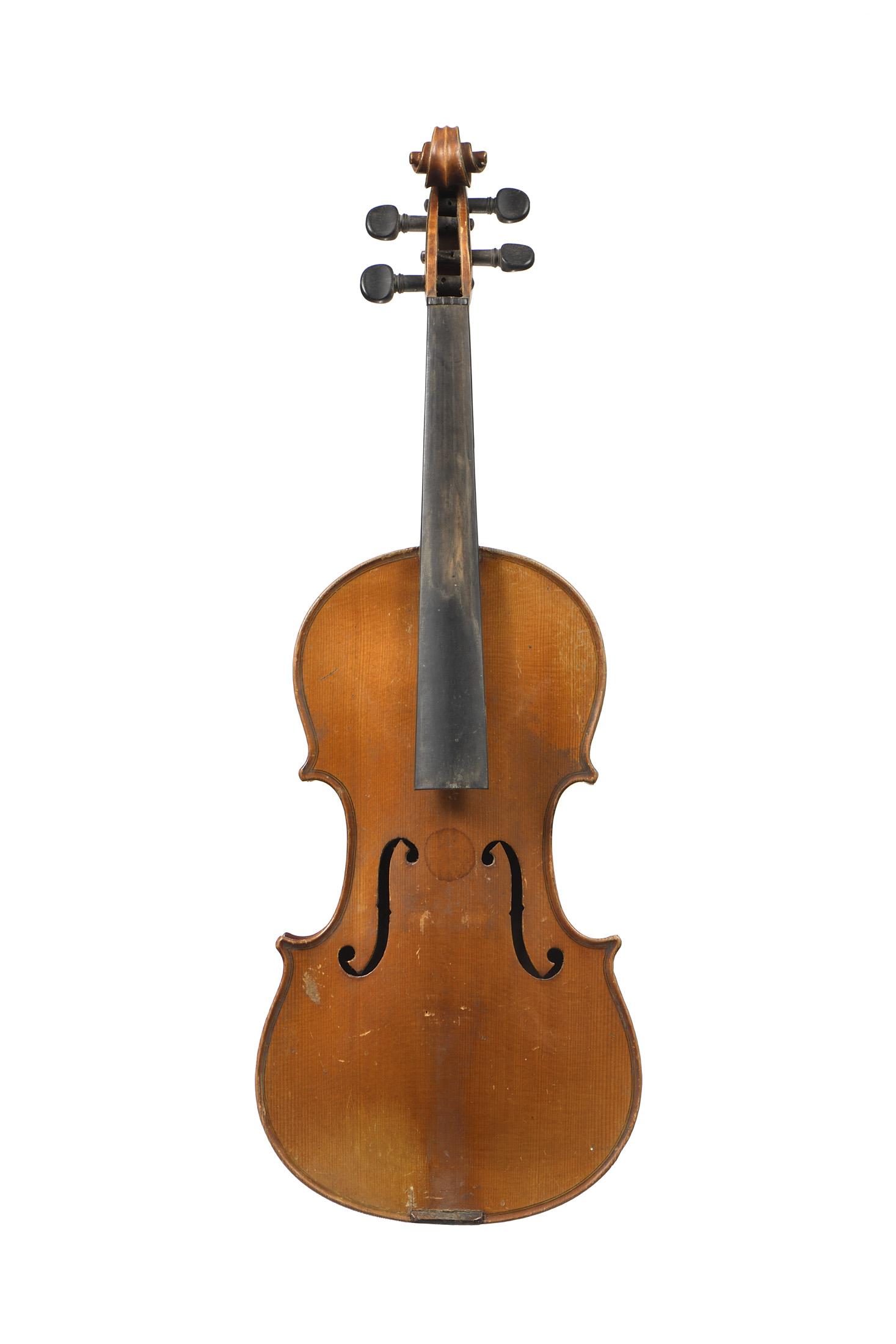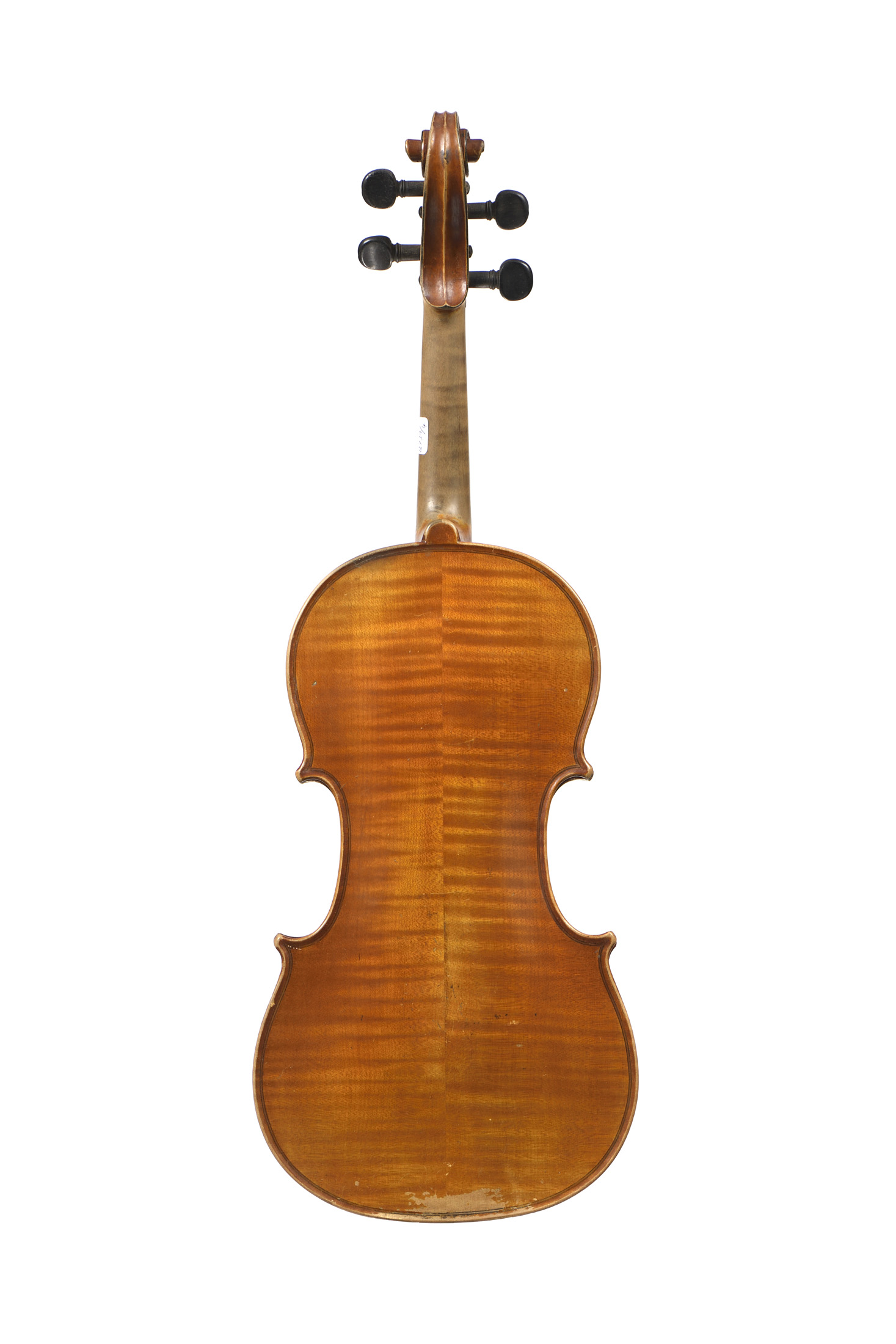 portant une étiquette "Stradivarius 1730". Fond de deux pièces en érable. Vernis brun doré. Avec boite et archet.