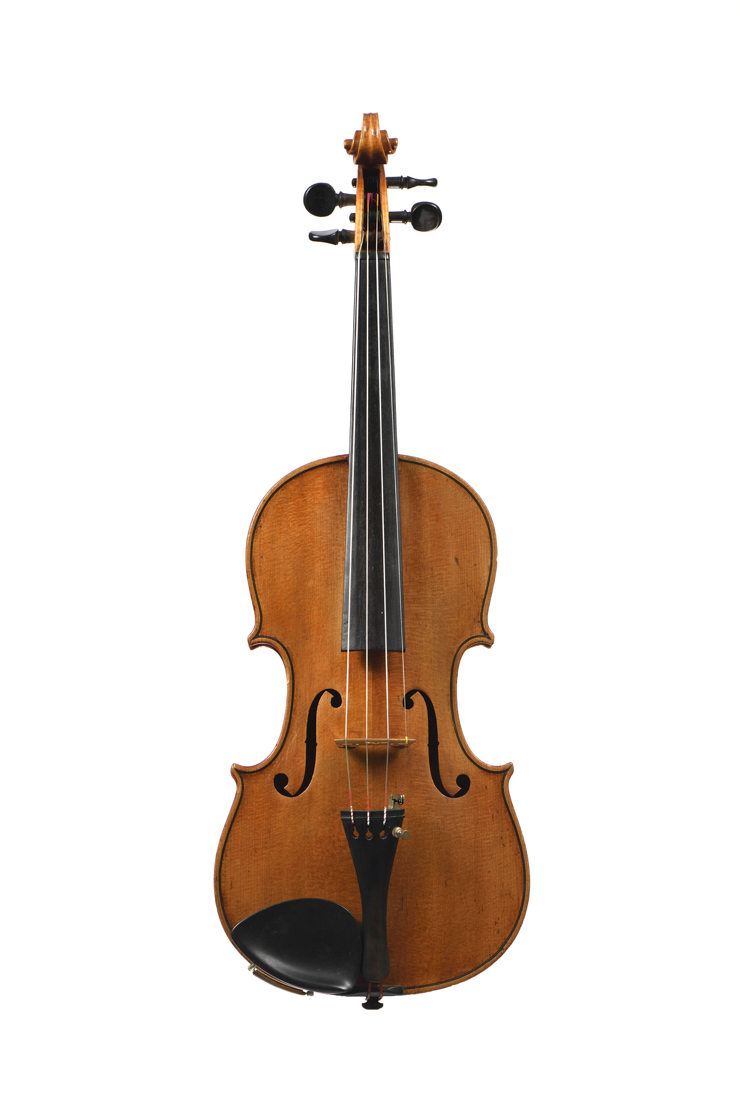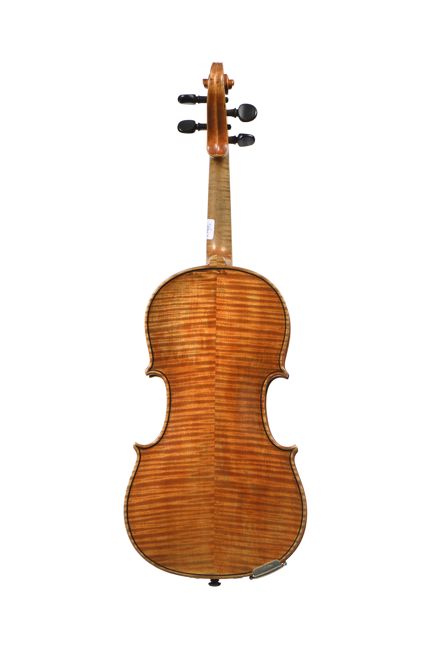portant une étiquette apocryphe "Marcel VATELOT luthier... 1931" et à la plume "Eichmann?". Fond de deux pièces en érable. Vernis brun orangé sur fond doré. Avec boite et archet moderne.