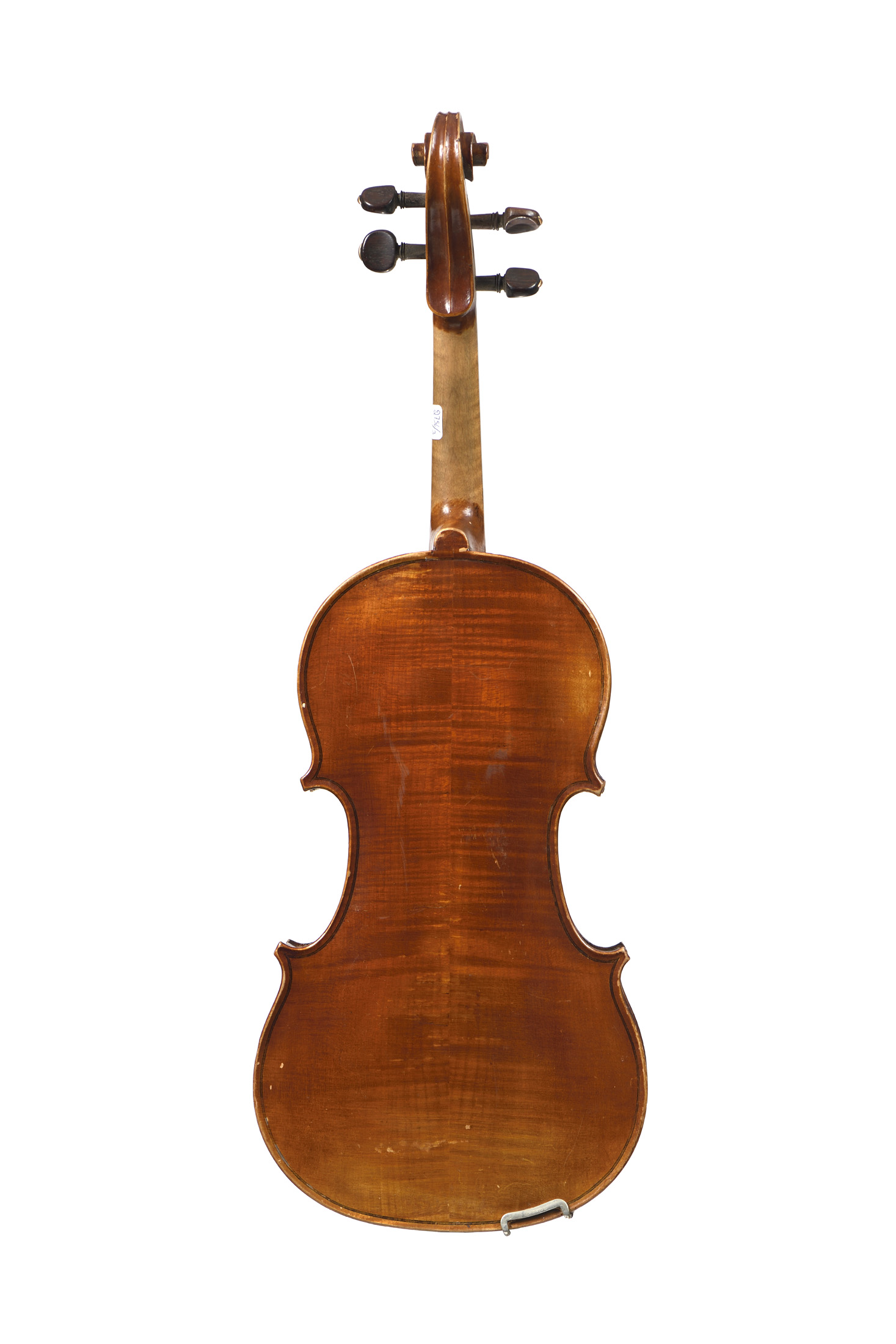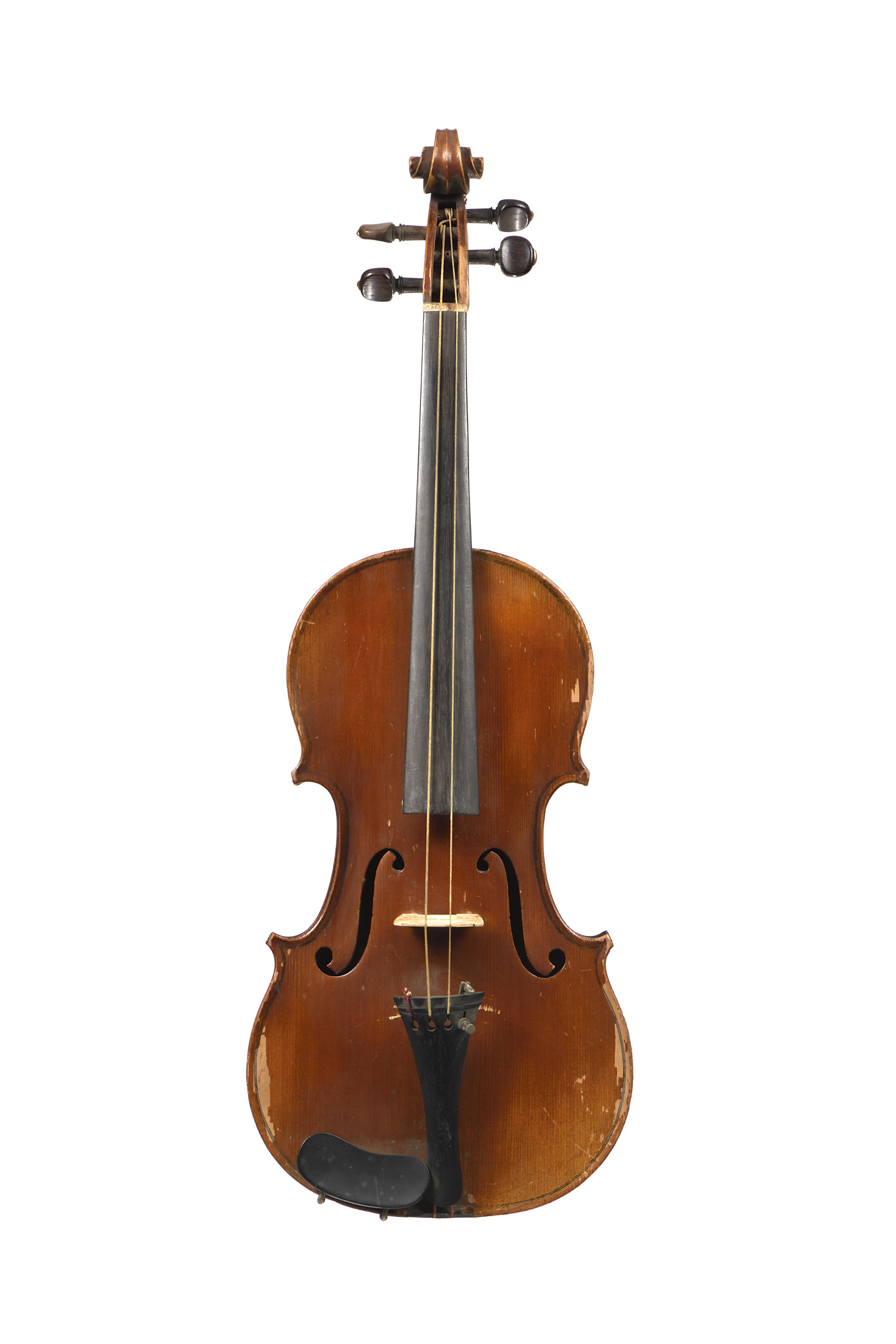 portant une étiquette "Copie de Jean Baptiste Vuillaume à Paris...". Fond de deux pièces en érable. Vernis brun orangé sur fond doré. Altération du vernis. 359 mm.
