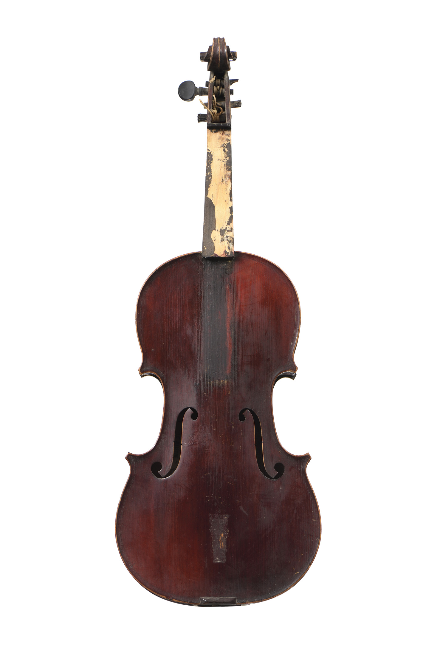 portant les étiquettes "LE MAISTRE" et "Jerome Thibouville Lamy...". Fait à Mirecourt au début du XXe. Fond d'une pièce en érable. Manque la touche. Vernis brun rouge. 358 mm.