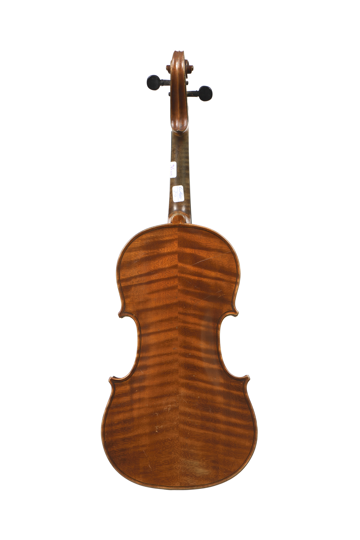 portant une étiquette "Antonius Stradivarius 1721...". Vernis brun sur fond doré. Fond de deux pièces en érable. Diverses usures. traces de colle. Vernis brun doré. 359 mm.