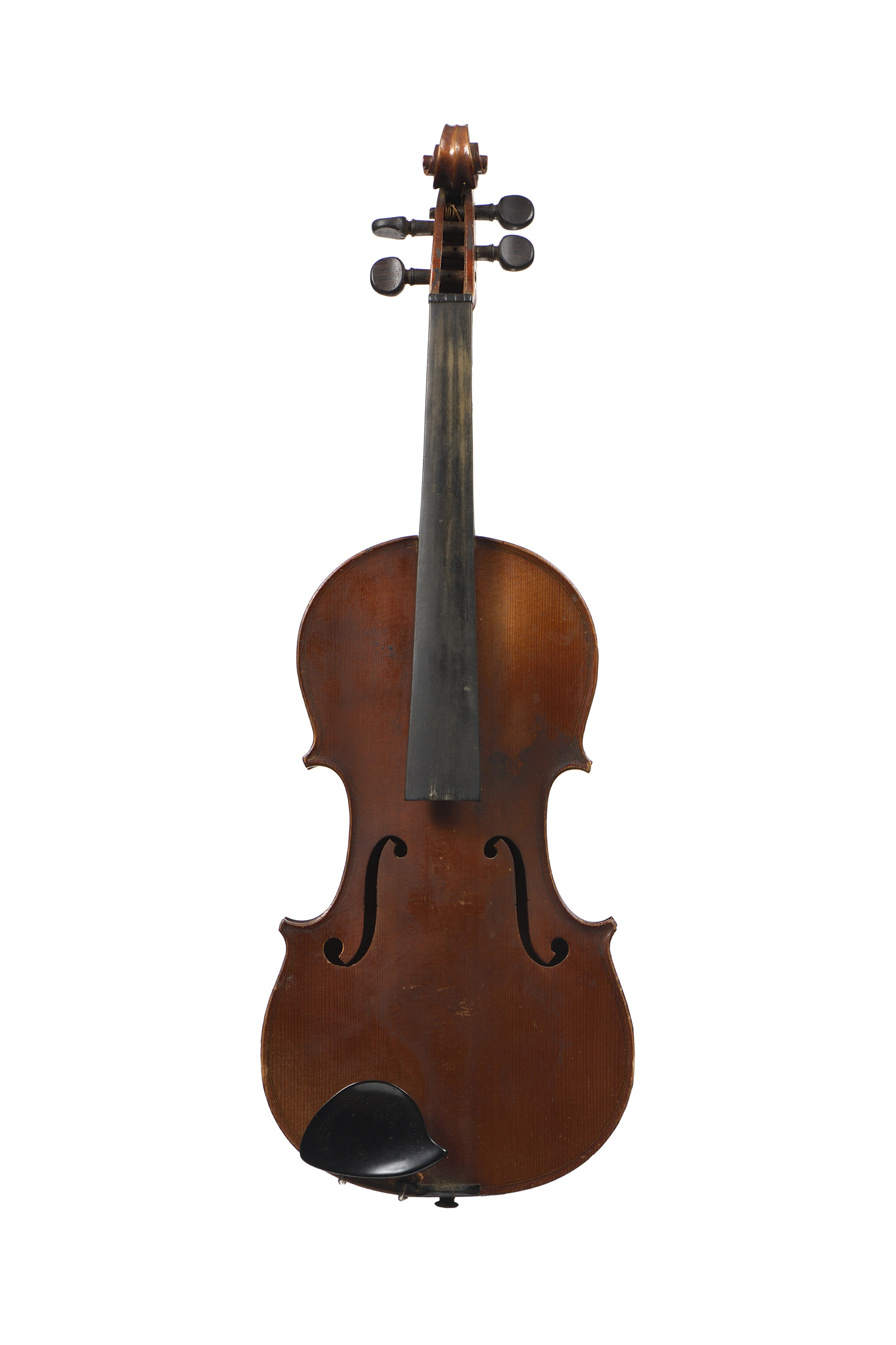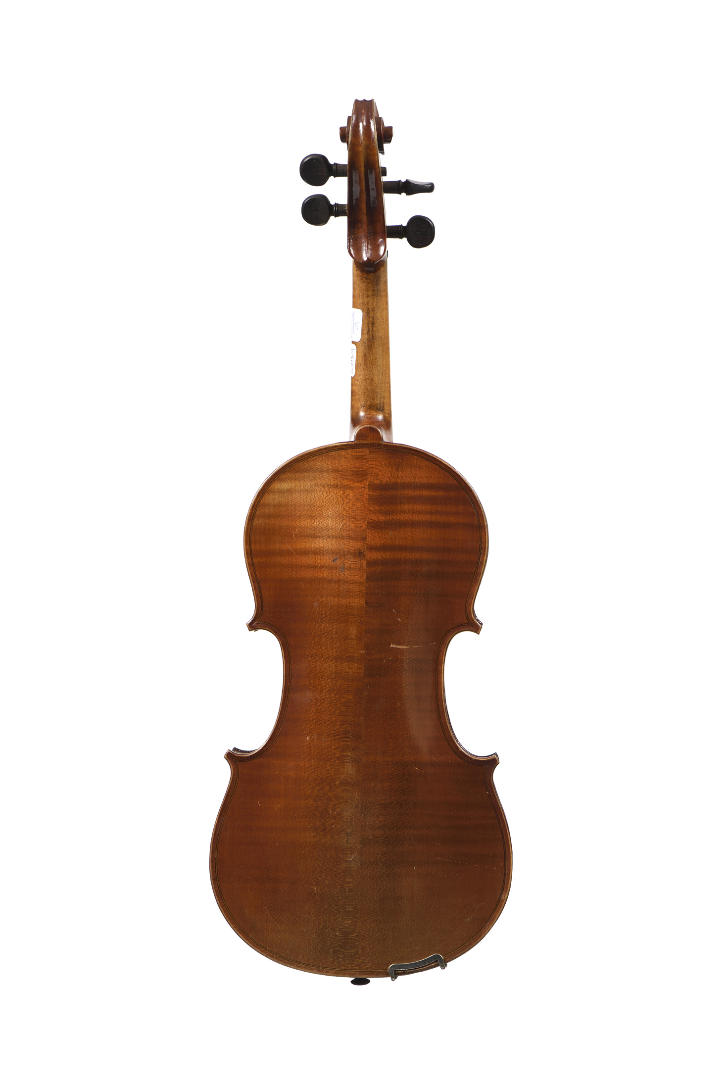 portant une étiquette apocyrphe "Jacques Bocquay..." fait au début du XXe. Fond de deux pièces en érable. Vernis brun orangé sur fond doré. Avec boite et archet. 359 mm.