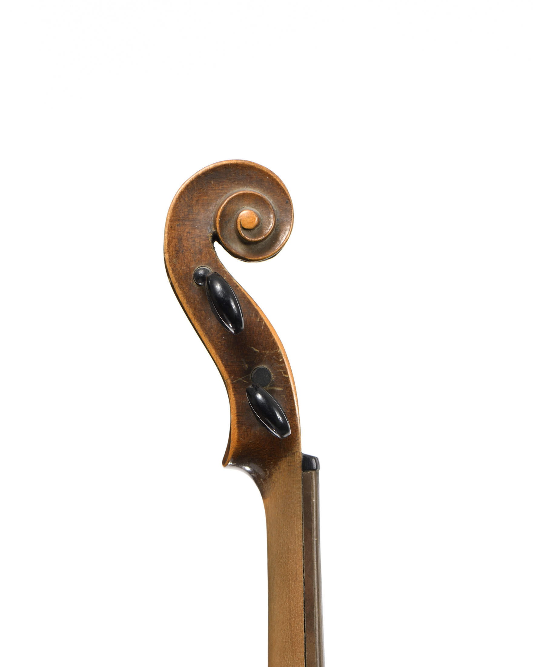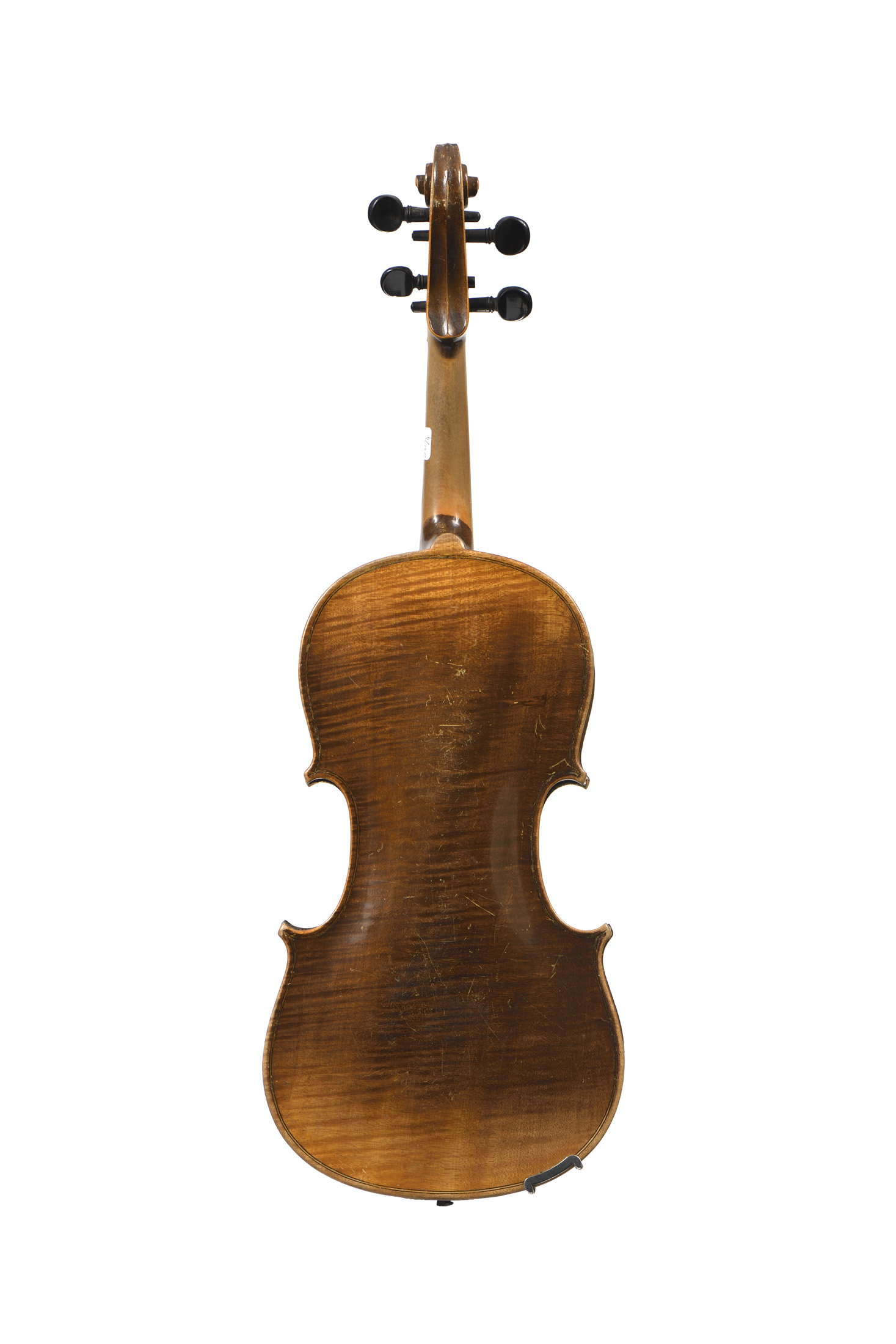 Sans étiquette. Fait à Mirecourt à la fin du XIXe. Fond d'une pièce en érable. Vernis brun sur fond doré. 362 mm.