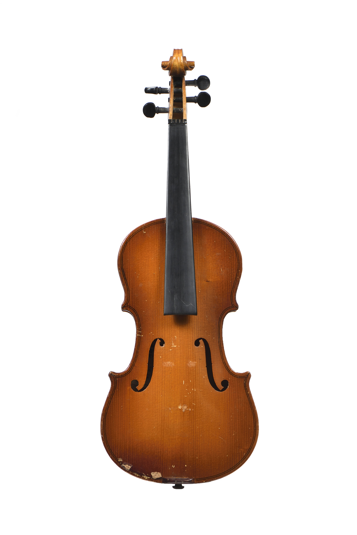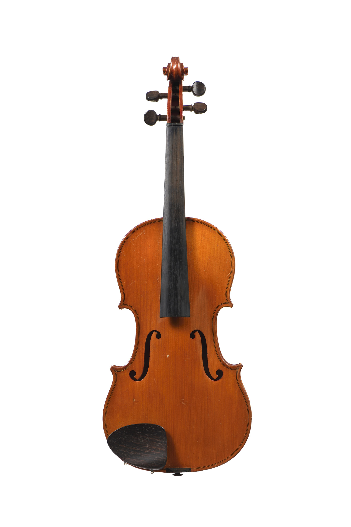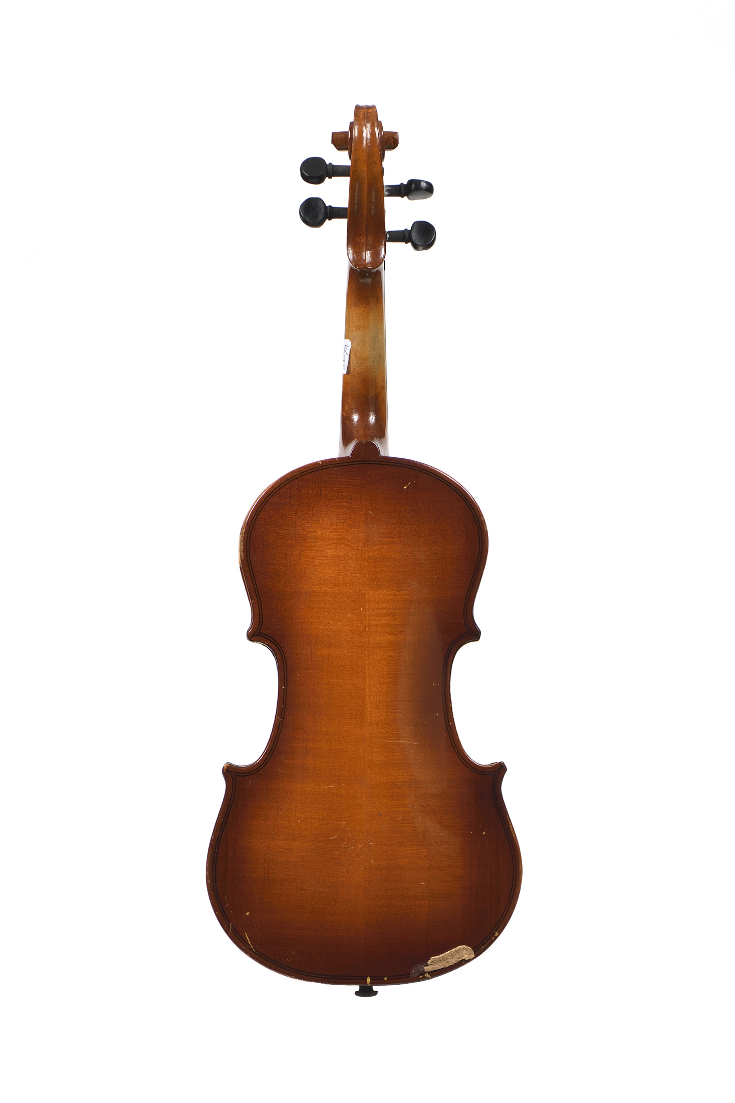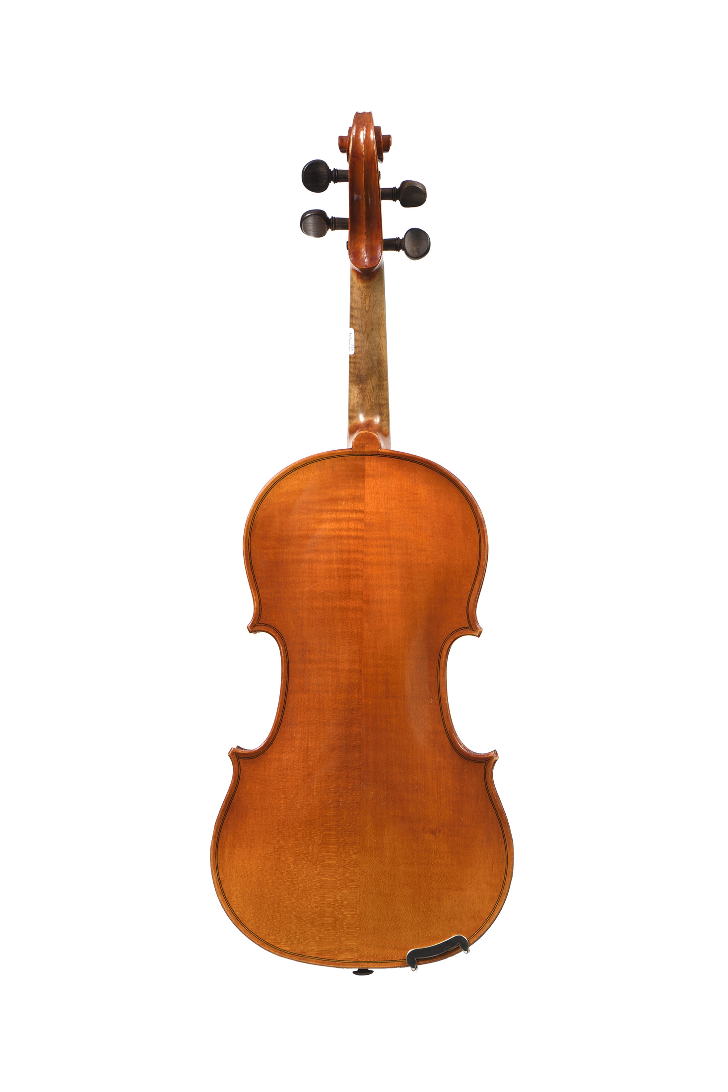 portant une étiquette "Copie de Stradivarius 1714.". Fond de deux pièces en érable. Vernis brun orangé. 357 mm.