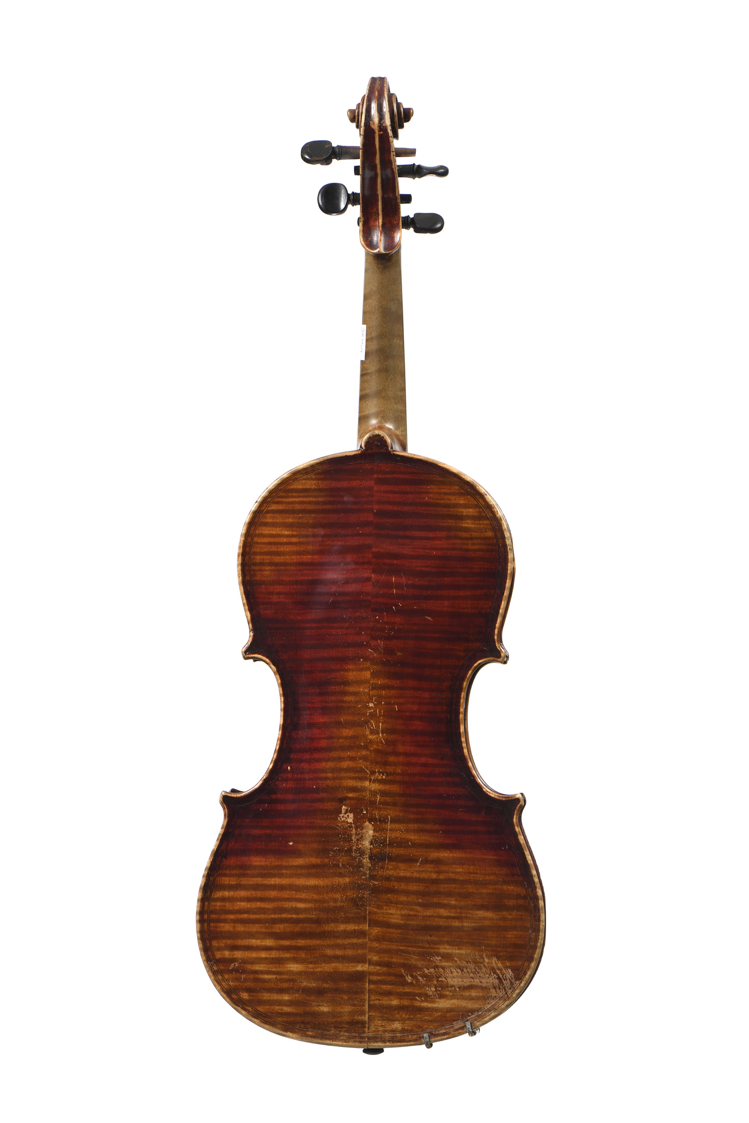 fait sur un modèle Maggini dont il porte une étiquette "Giovan Paolo Maggini. 1694" Fond de deux pièces. Double filets. 368 mm.