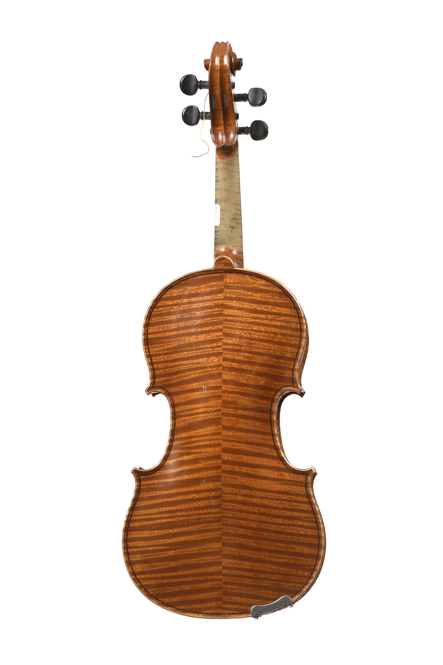 fait en copie de Stradivarius à Mirecourt au début du XXe. Fond de deux pièces en bel érable aux ondes régulières. Vernis brun doré. 360 mm. Cassure d'âme à la table.