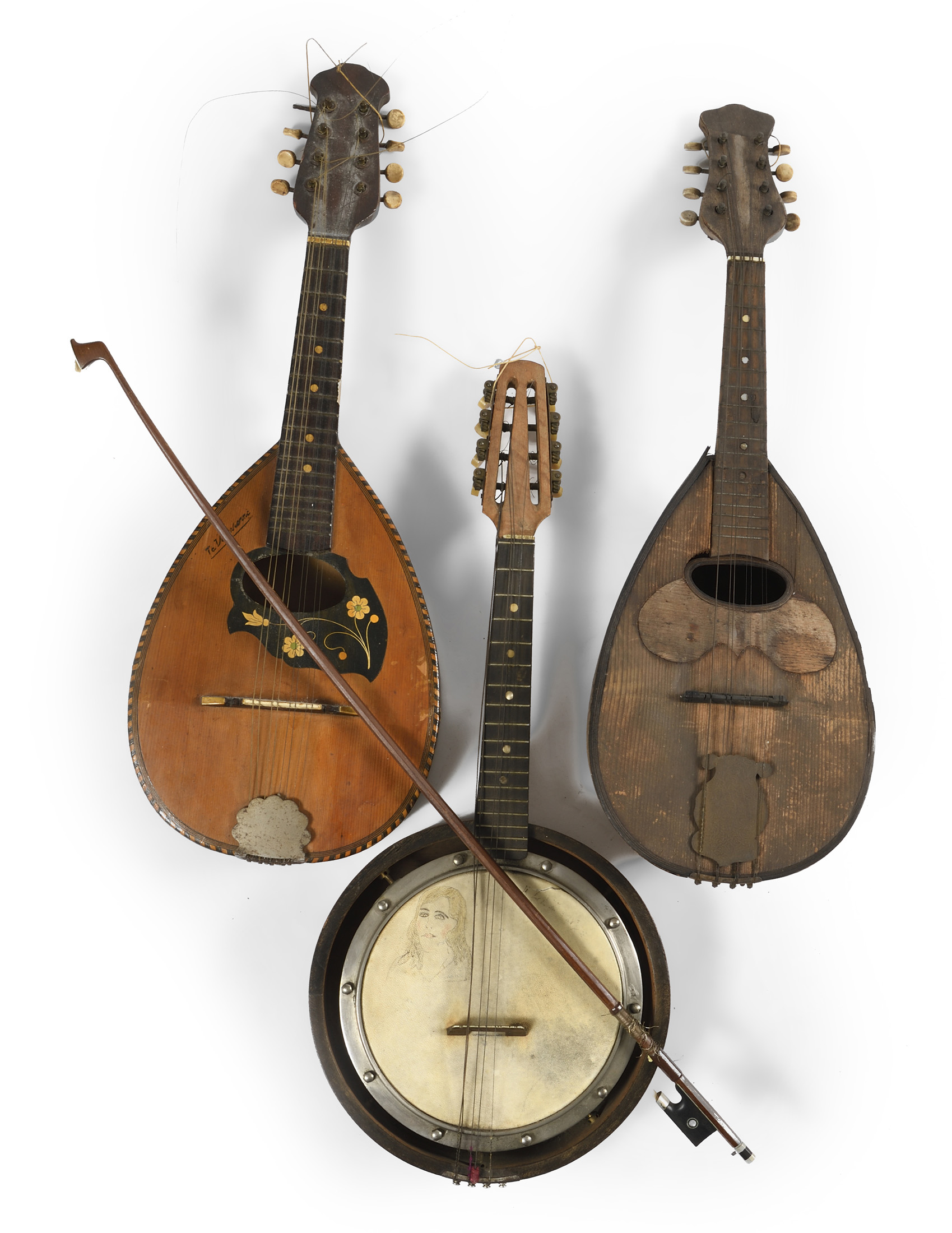 Deux mandolines d'étude, un banjo.