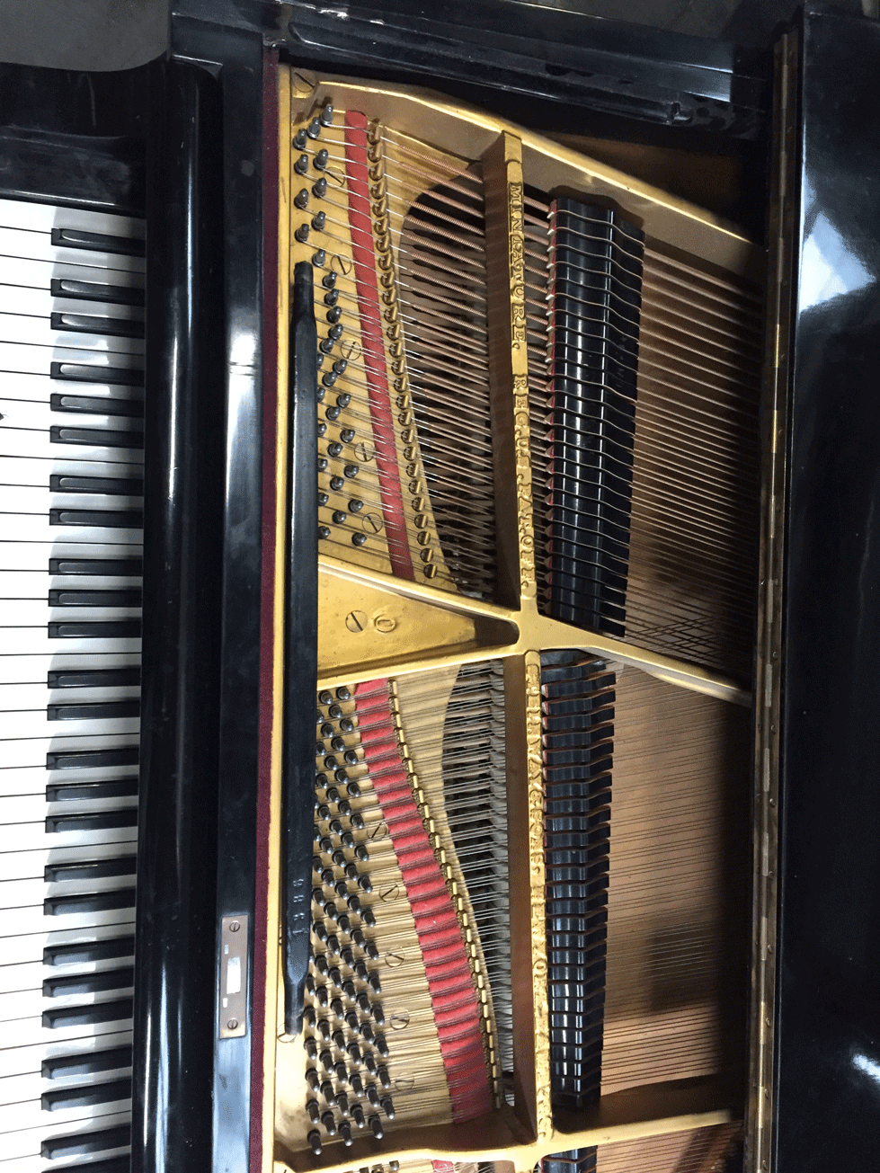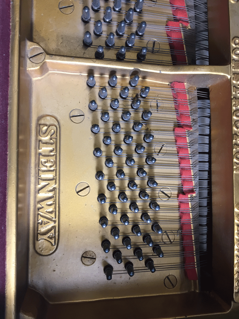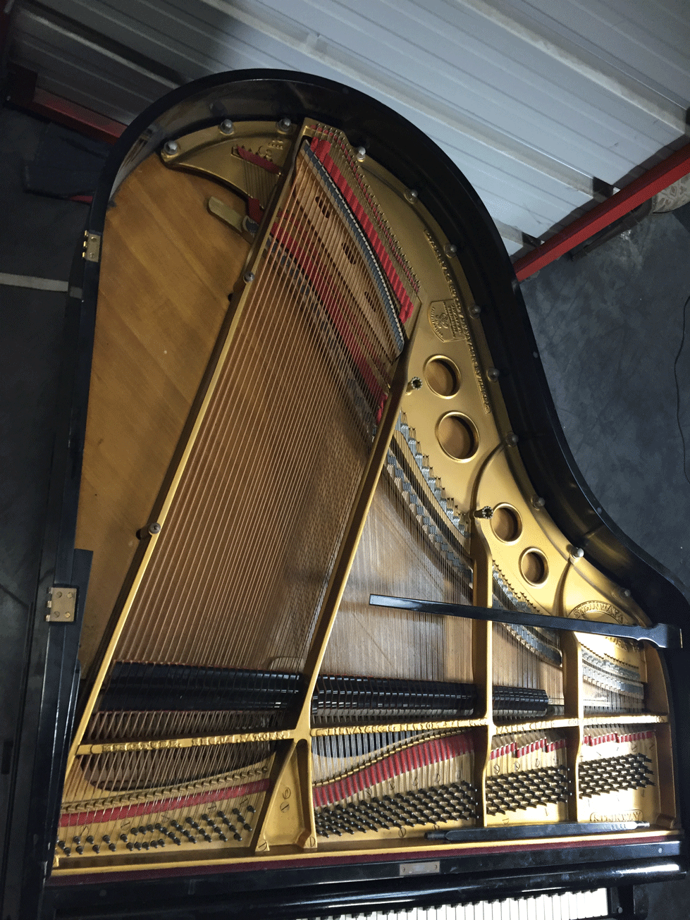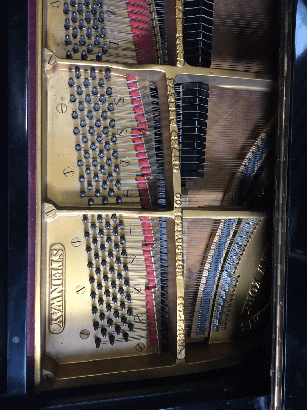 Beau piano Steinway & Sons. Cadre fonte. Il porte la marque "Steinway and sons - New York Hamburg -US Patt off. Tubular mettallication frame pat". Numéros de serie partiellement effacées 238868 Noir brillant. Deux pédales.