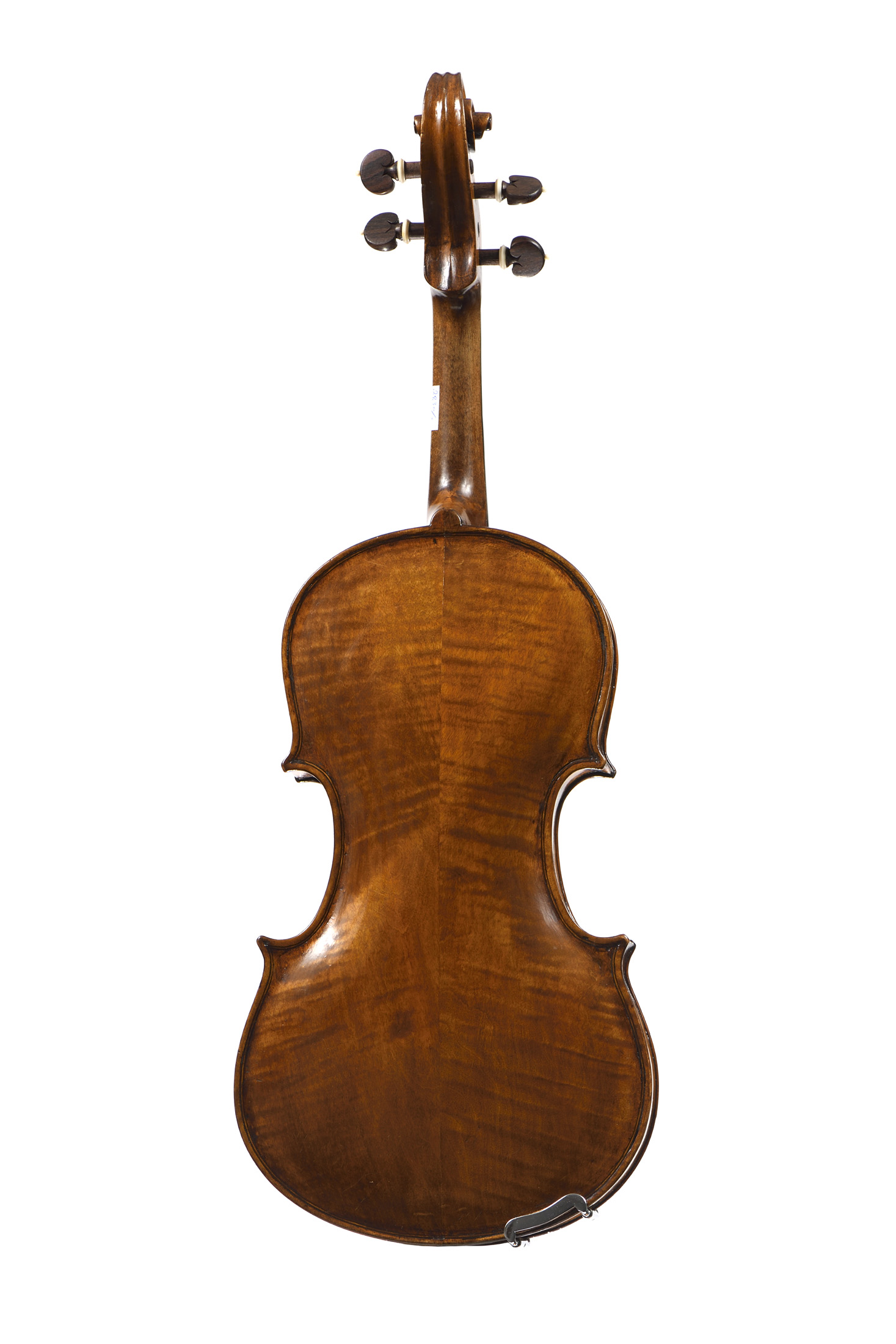 Intéressant violon fait en copie de Testore XIXe, portant une étiquette apocryphe "Carlo Giuseppe Testore 1715". Fond deux pièces en érable. Vernis brun doré. 352 mm.