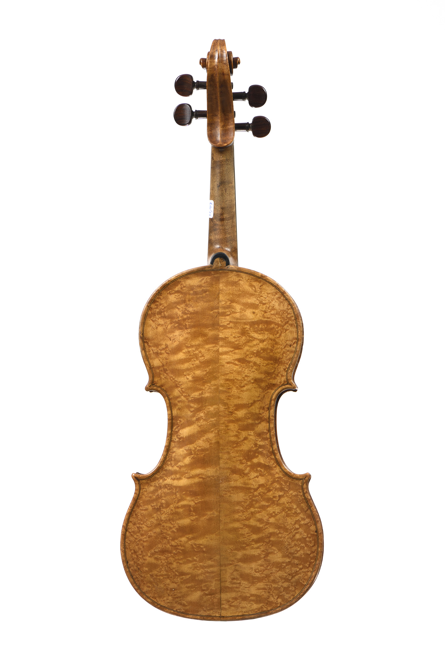fait par S.B WILKINSON n° 24 au millésime 1890 dont il porte l'étiquette originale et la marque au fer au tasseau du manche. Eclisses et fond en loupe d'érable. Vernis brun miel. 360 mm.