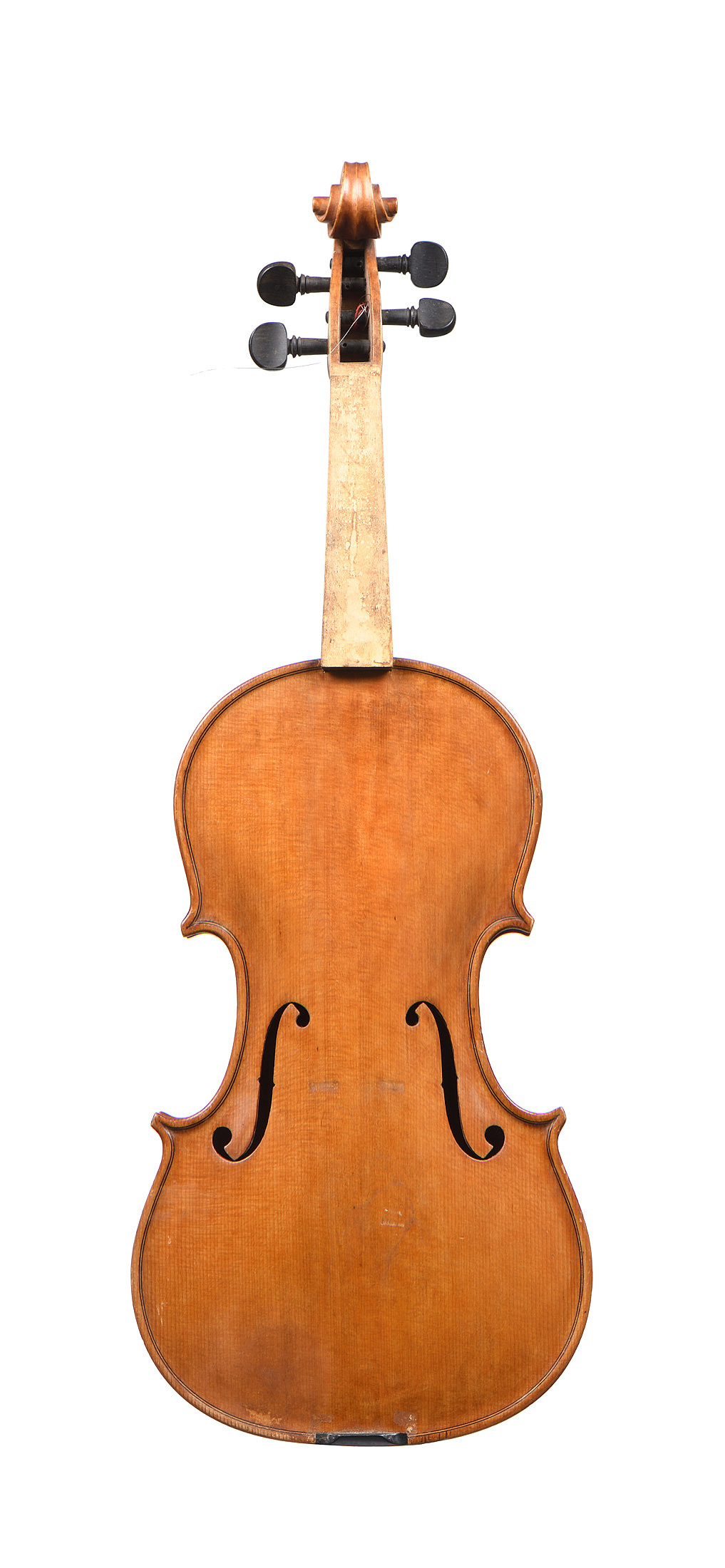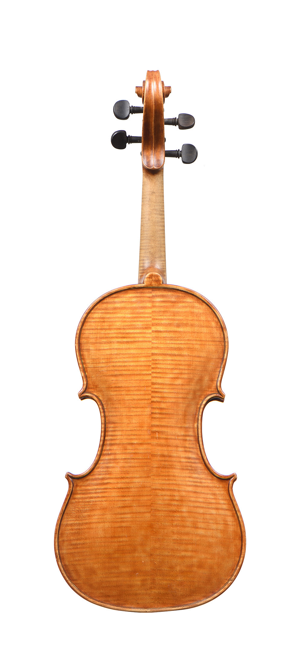 Intéressant violon Italien moderne, portant une étiquette de "Giovanni d'Ambrosio. Fecit Bologna. Anno 1957.". Fond de deux pièces en érable aux ondes régulières. Vernis brun miel sur fond doré. 355 mm. Manque la touche.