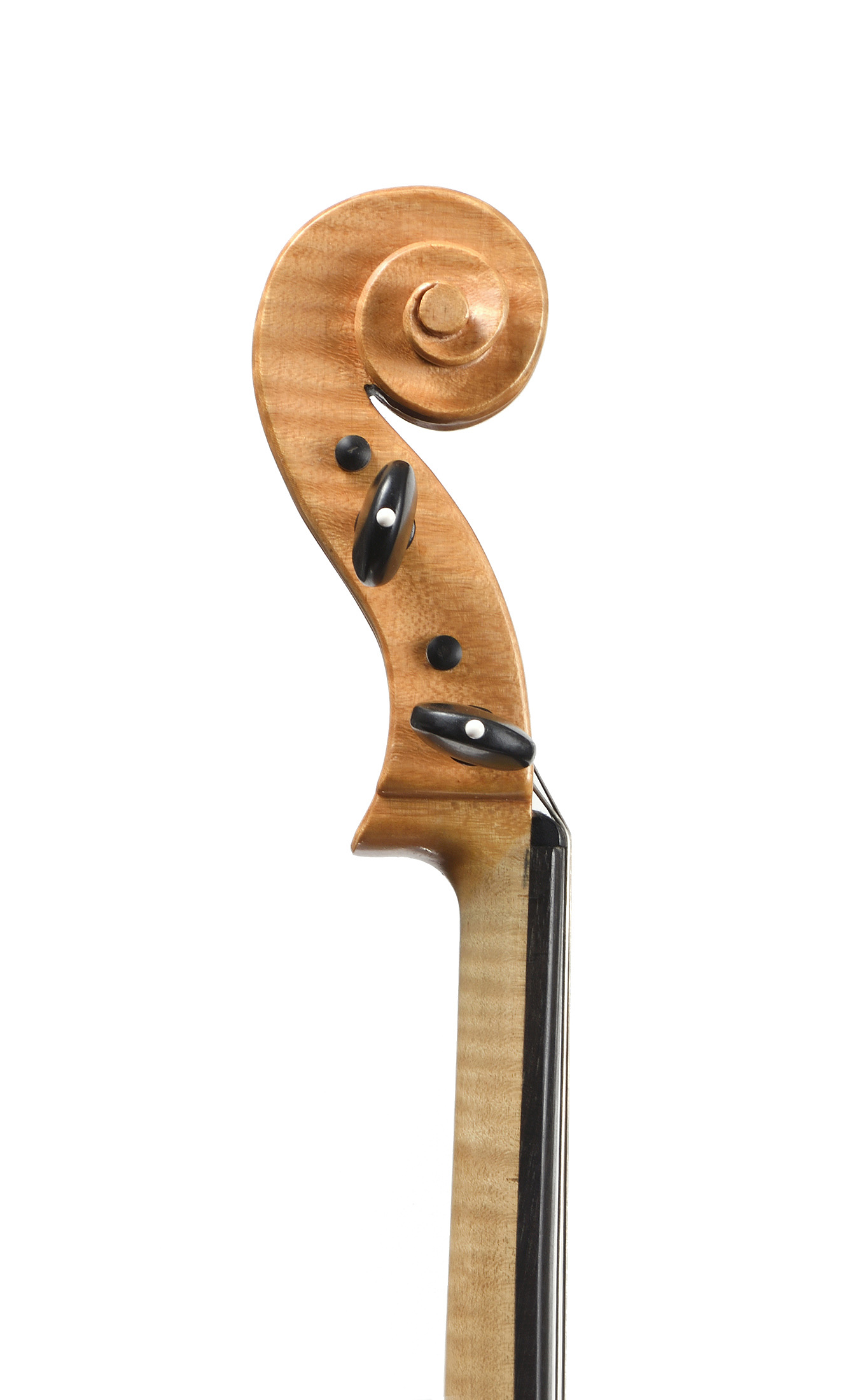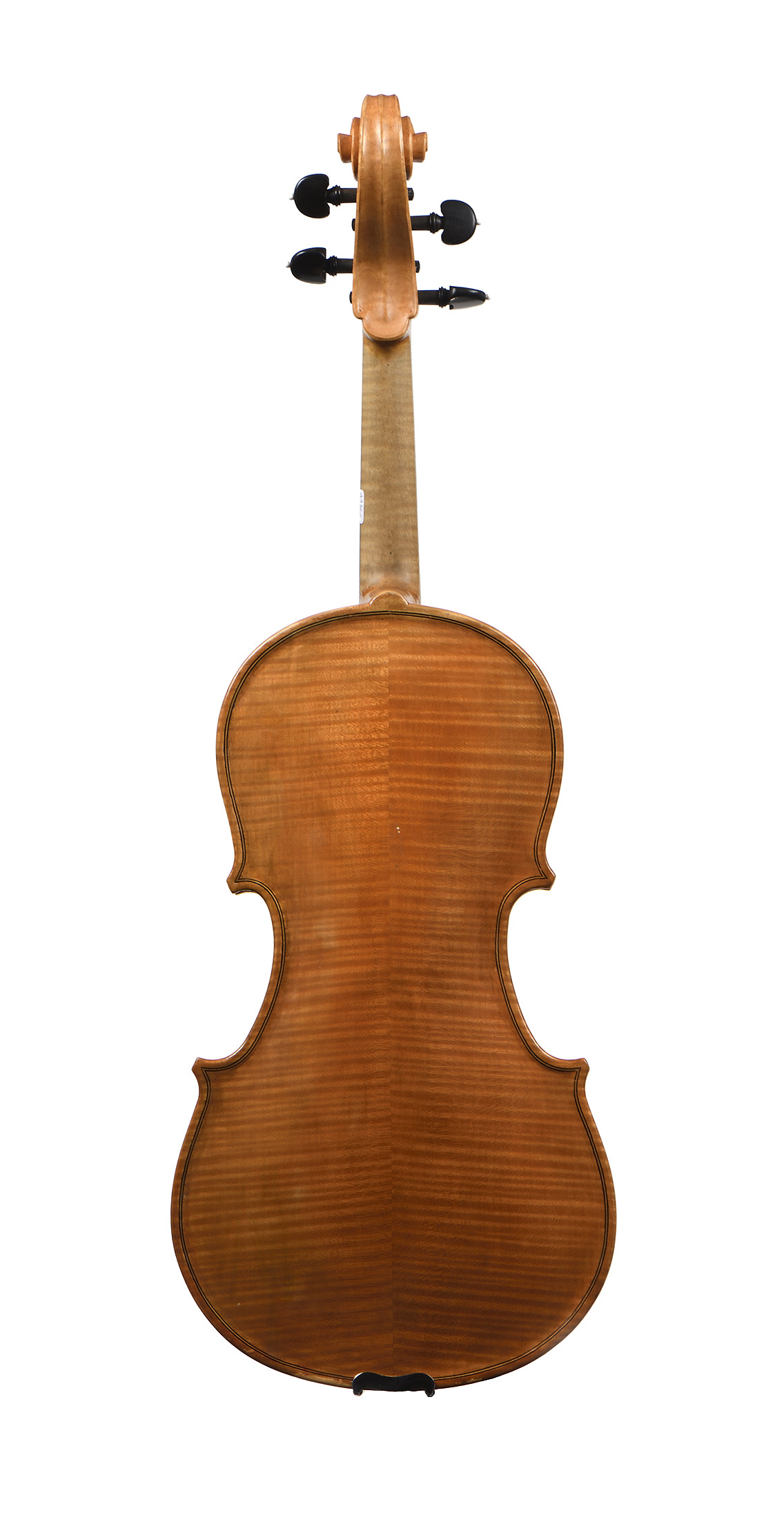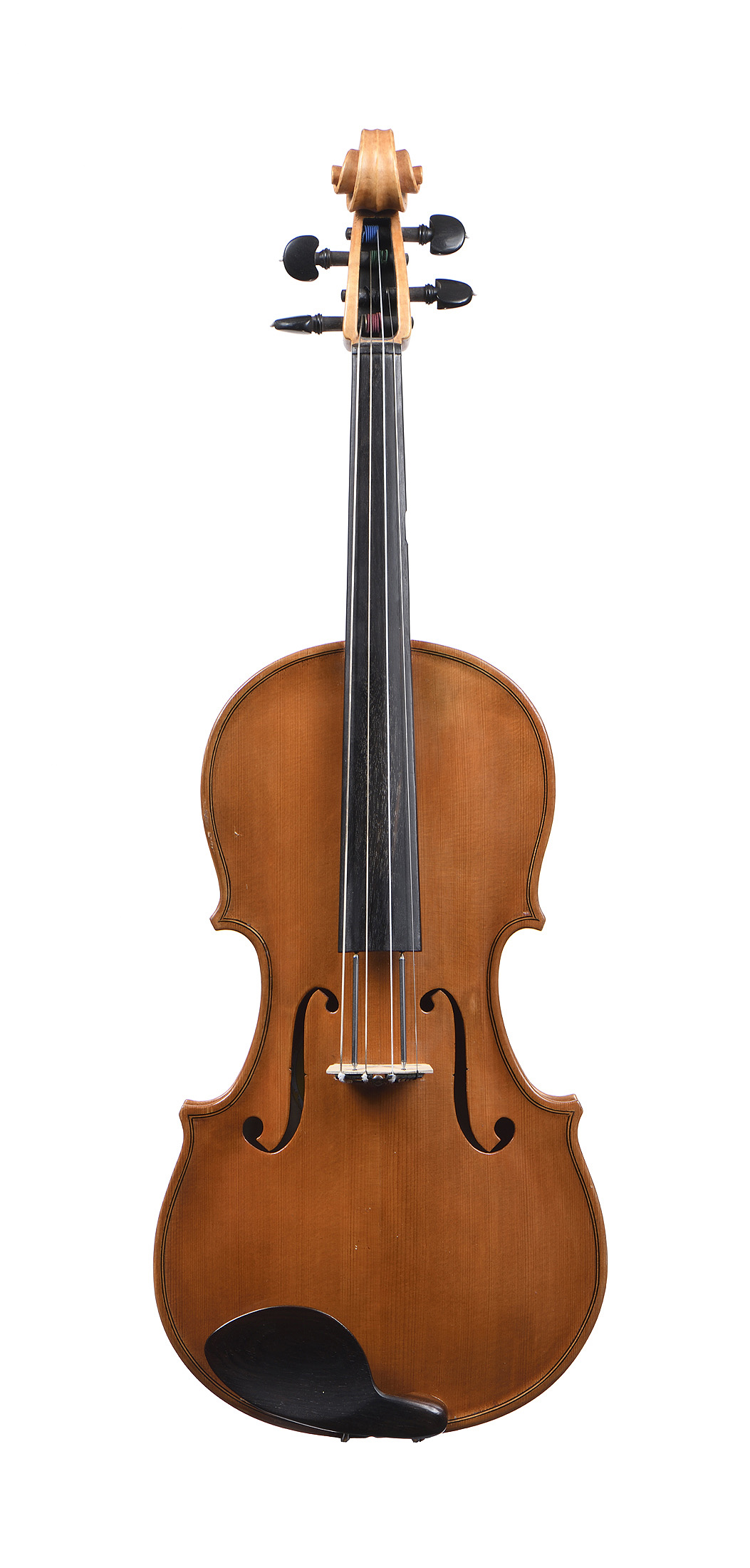 dont il porte l'étiquette. Avec chevalet prototype de l'auteur. Fond de deux pièces en érable. Table en épicéa. 418 mm.