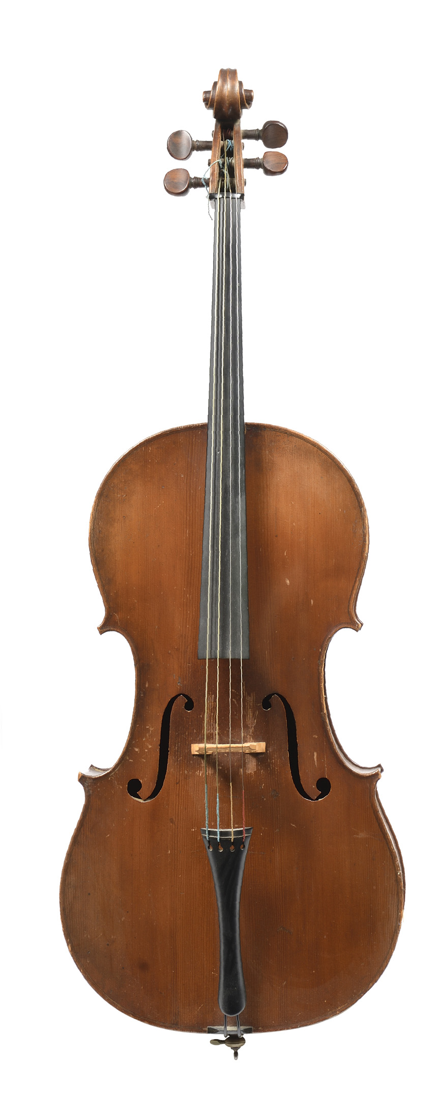 portant une étiquette apocryphe "Matteo Goffriller... 1726". Fond de deux pièces en érable. Vernis brun sur fond doré. Diverses cassures dont une à l'âme au fond. Avec un archet moderne.