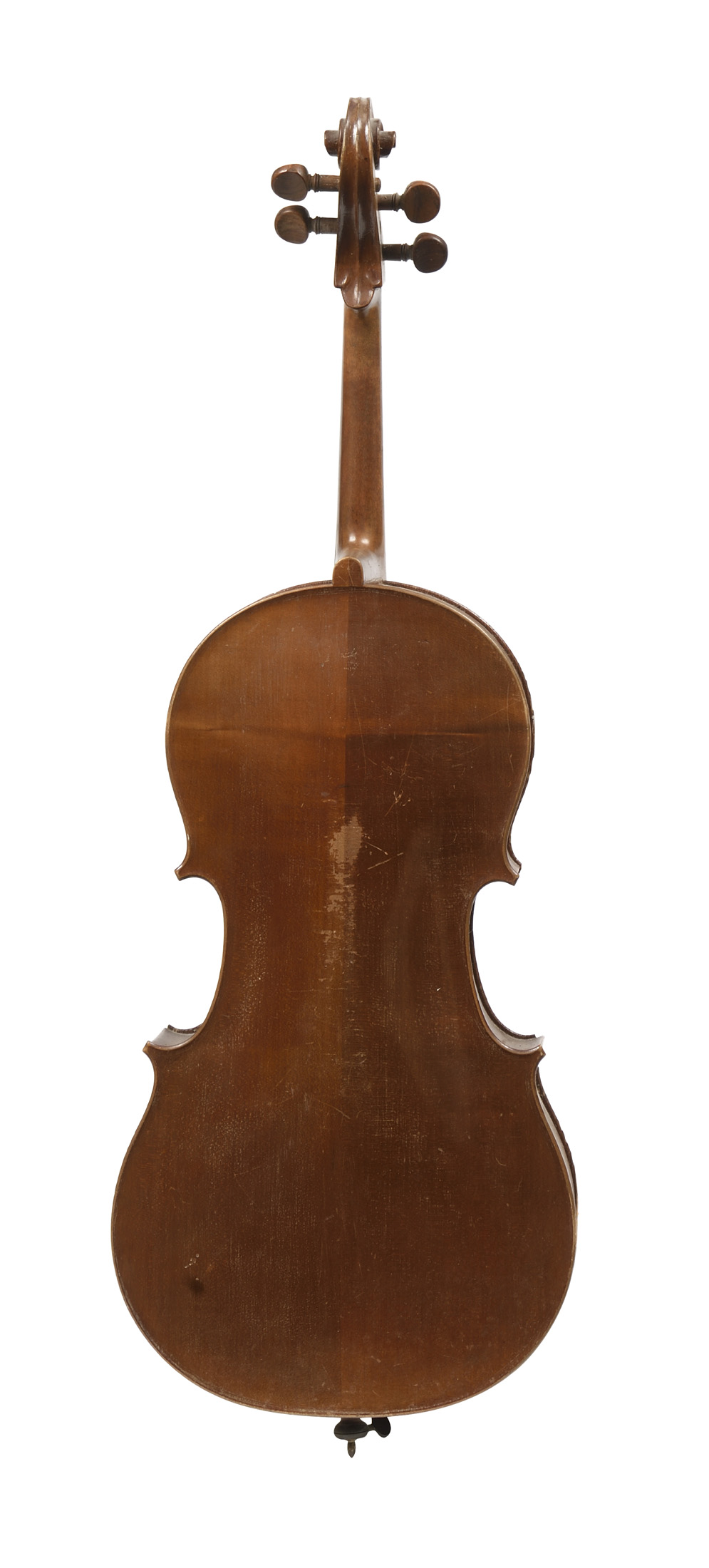portant une étiquette "Paul Beuscher". Fond de deux pièces. Vernis brun sur fond doré. Non fileté. Diverses usures et décollages.