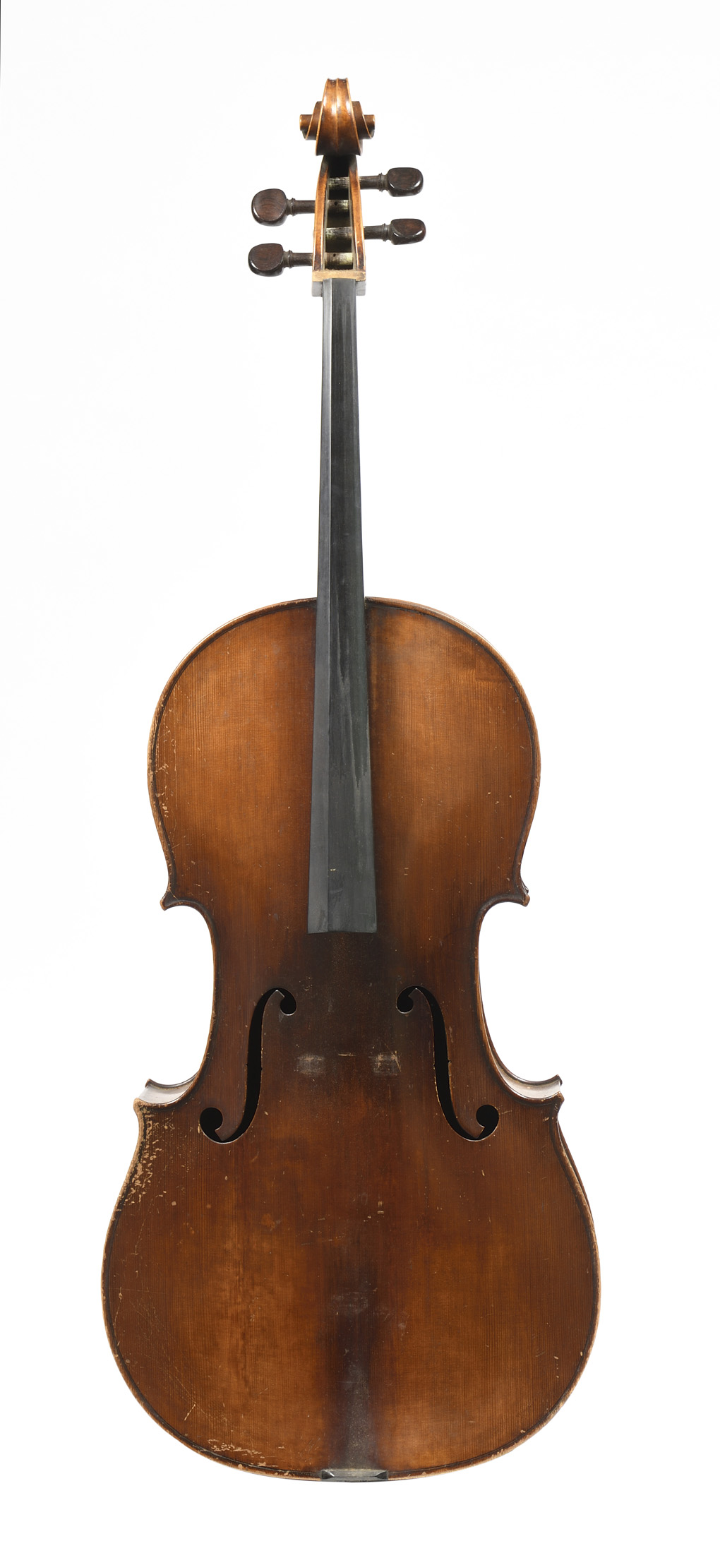 French cello by L. MOUGENOT JACQUET GAND bearing the label "L. MOUGENOT JACQUET GAND fait spécialement pour Paul JOMBAR. 37 rue de Rome à Paris.".