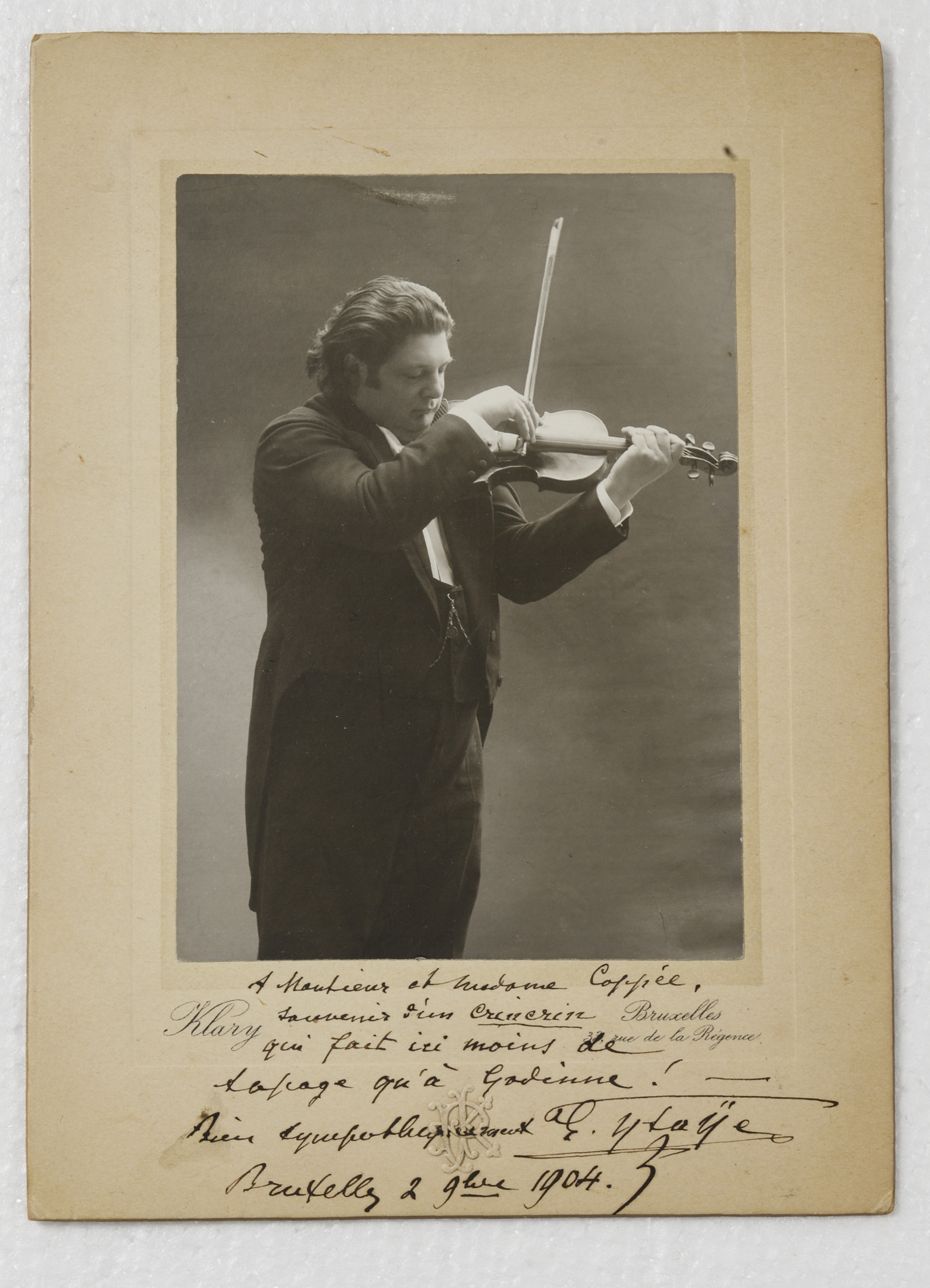 Photographie dédicacée " A monsieur et madame Coppée. Souvenir d'un crincrin qui fait içi moins de tapage qu'à Gadinne!... Bruxelles 29... 1904".