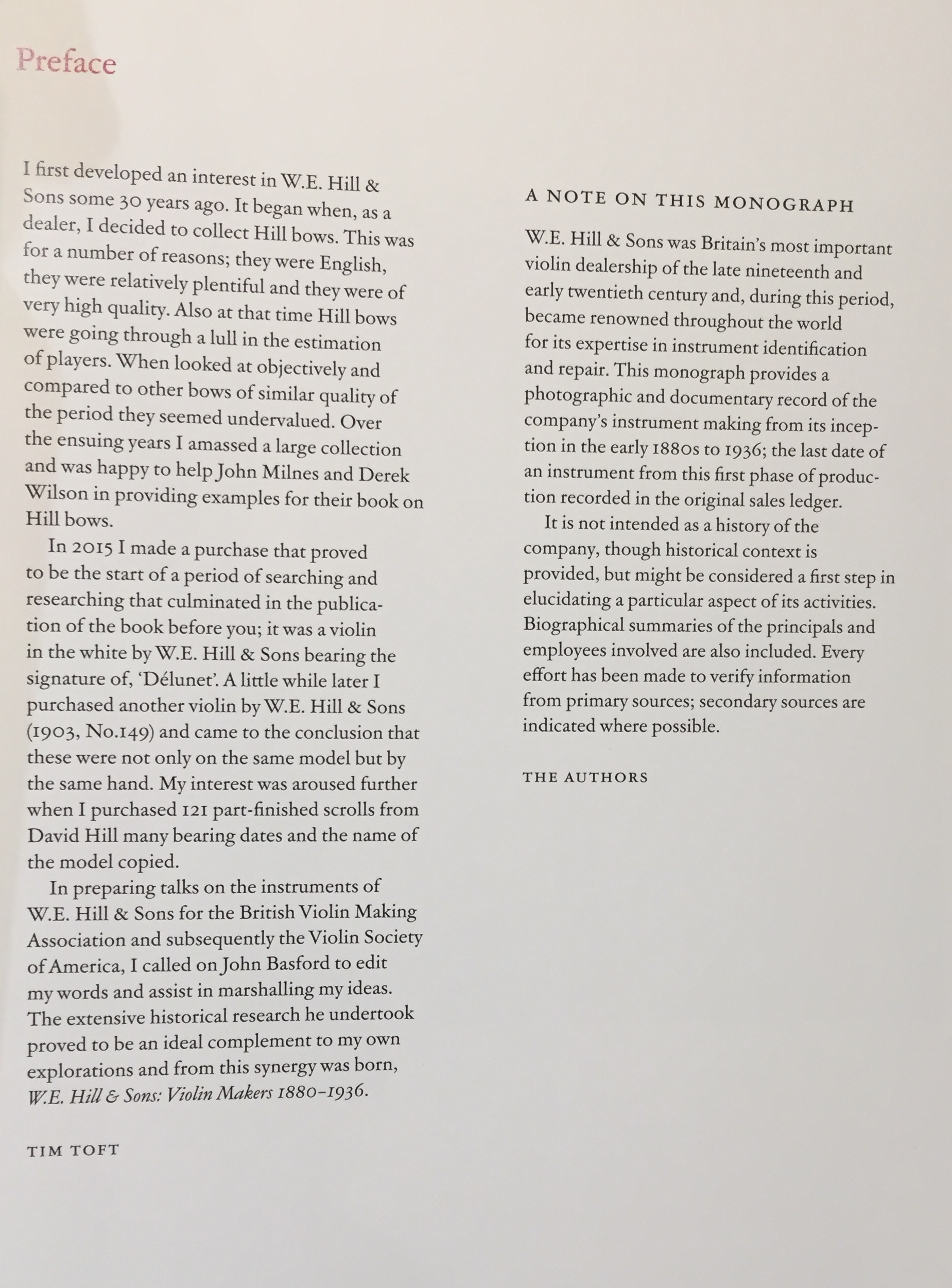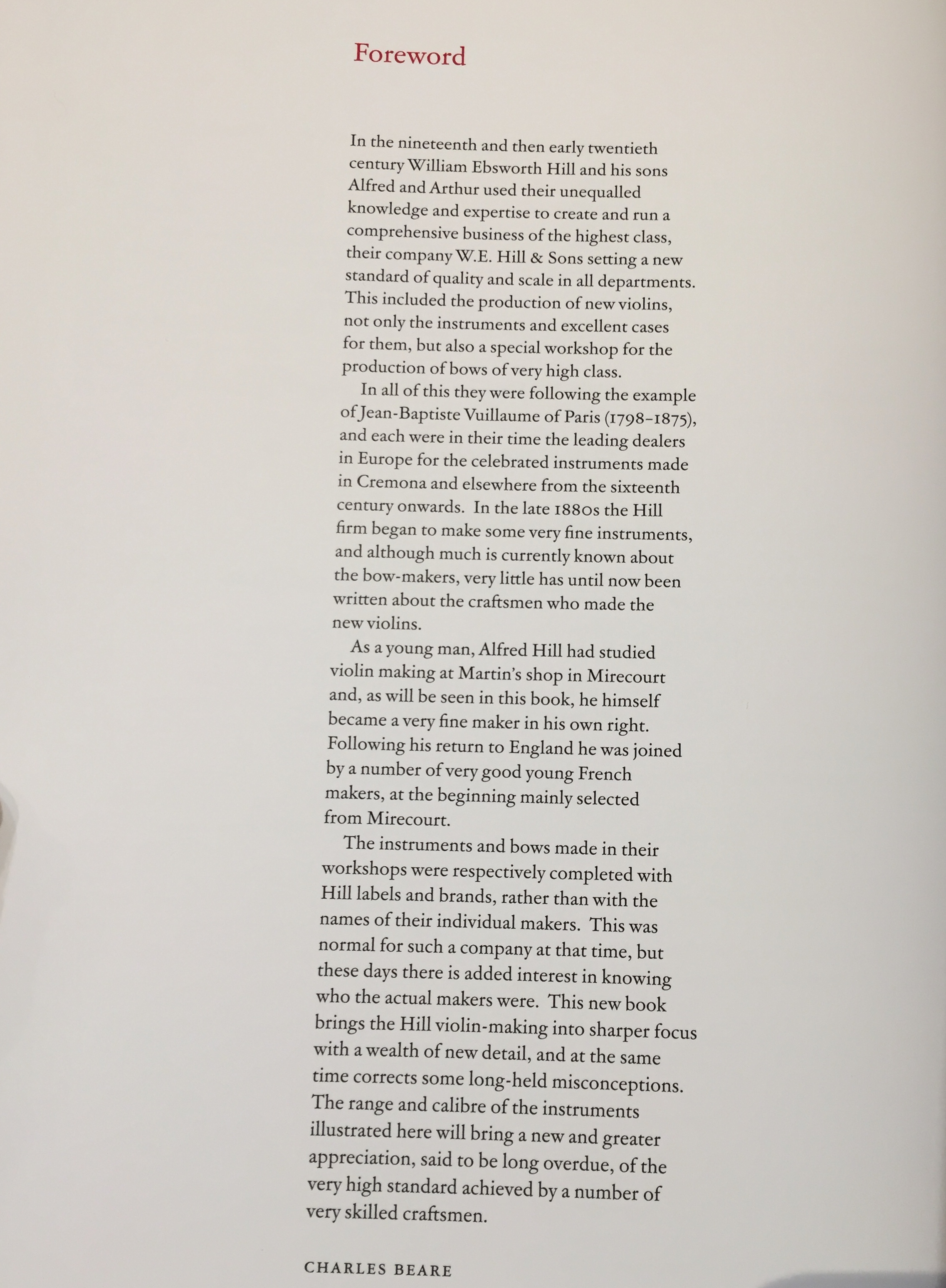 Violin Makers 1880-1936 by W.E. Hill and sons. John Basford and Tim Toft. Colley books. 2020. Foreword by Charles Beare.