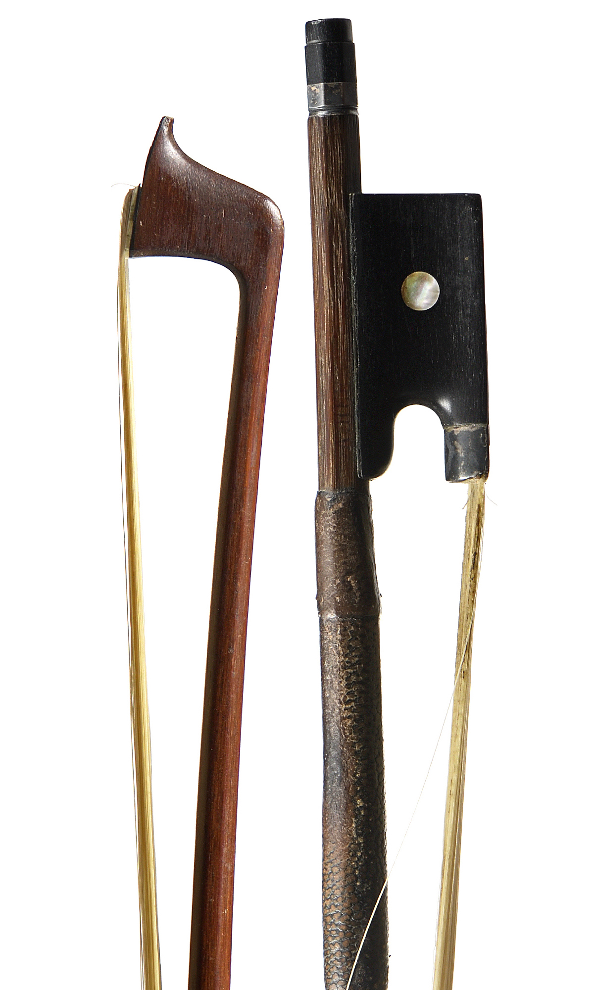 portant une marque "A.HER..."? Baguette octogonale en bois de pernambouc. Hausse ébène montée argent. Bouton Ebène et Argent avec une virole manquante. 727 mm. 54,3 g avec garniture cuir.