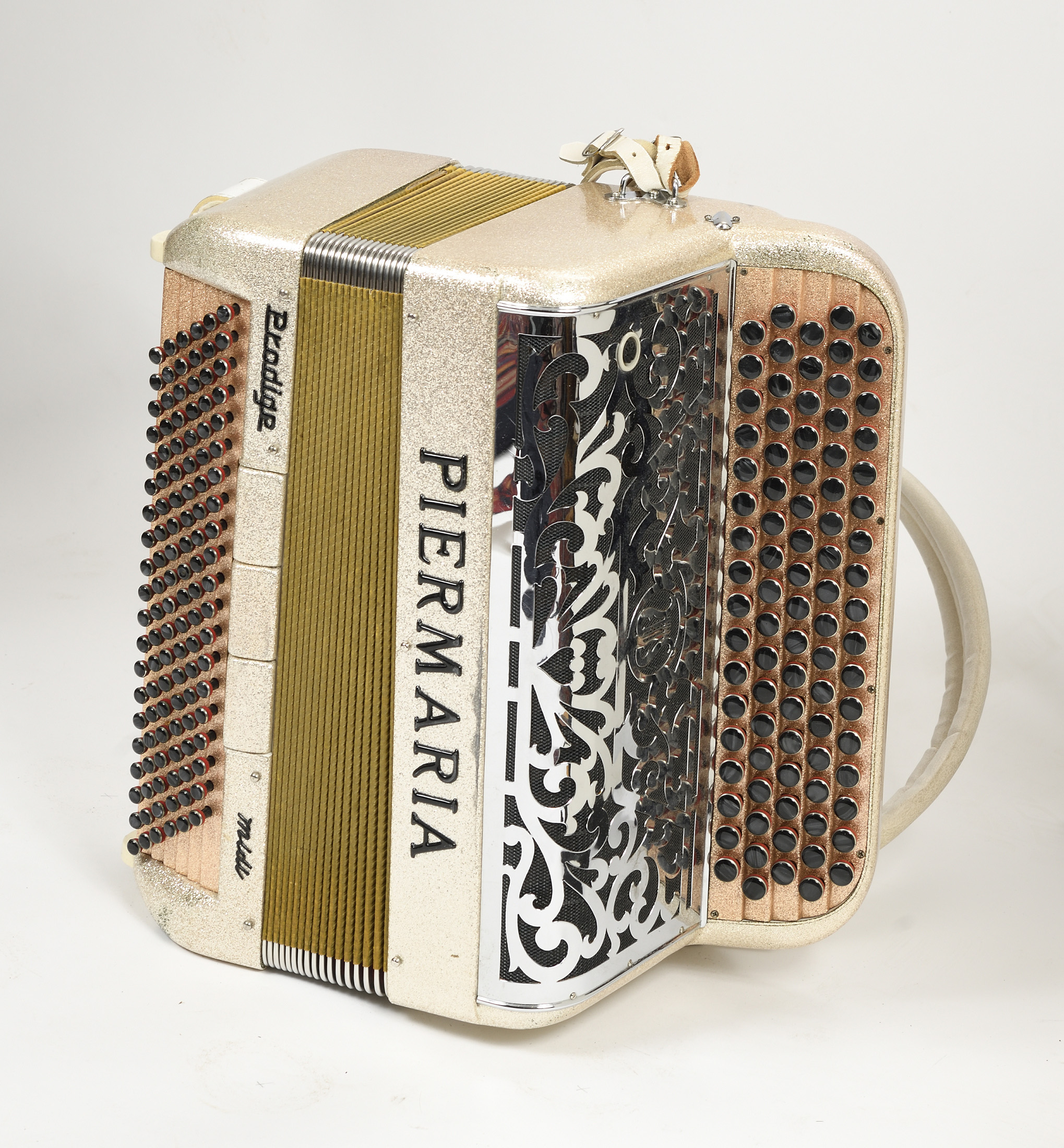 Accordéon à boutons, modèle "Prodige midi". Avec système électrique et housse. 6 X 20 rangées de basses.