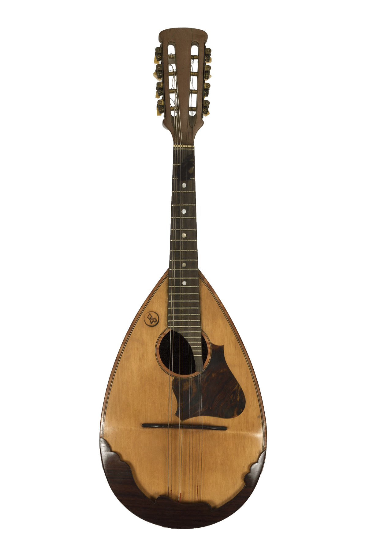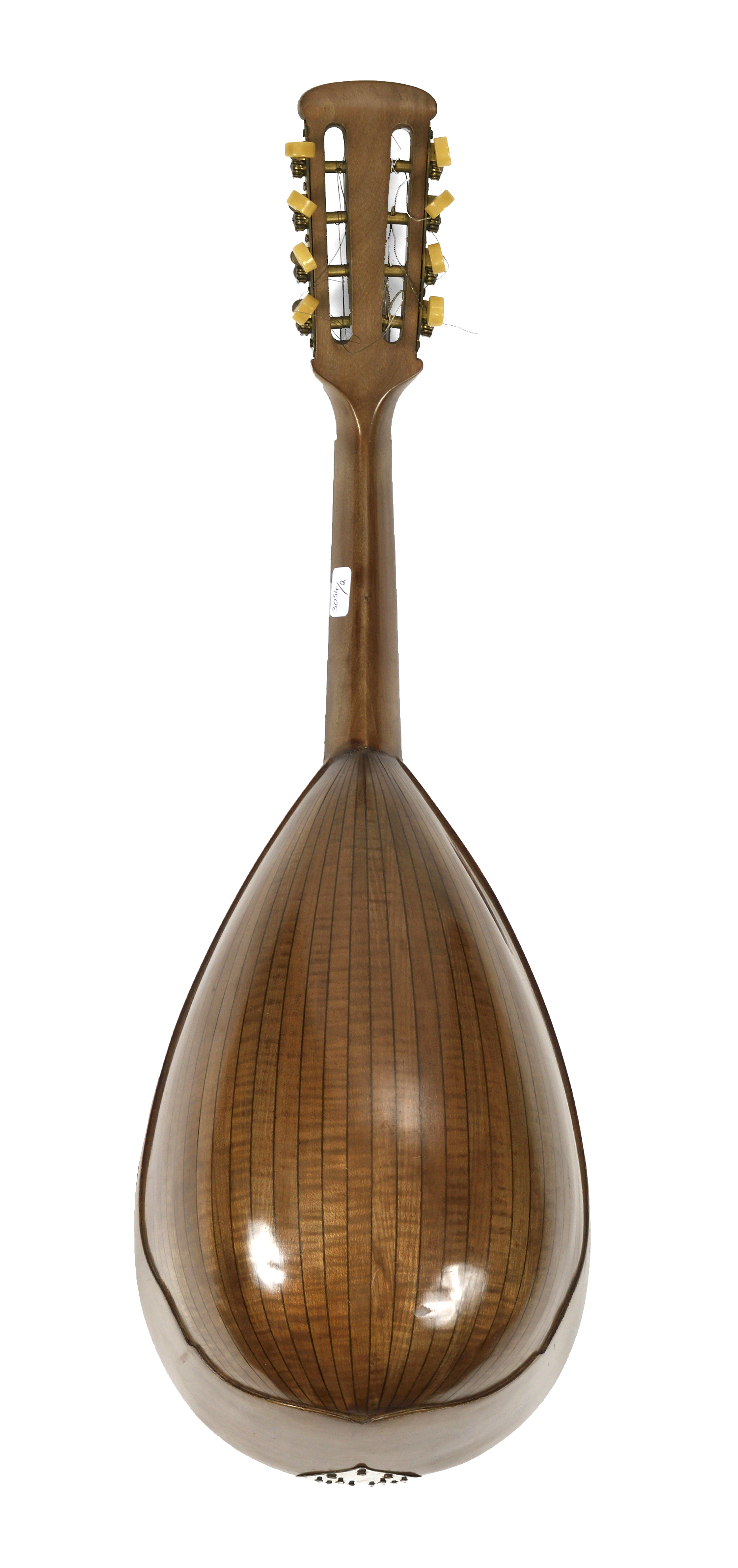 Belle mandoline portant une marque au fer sur la table. Fond bombé en érable.