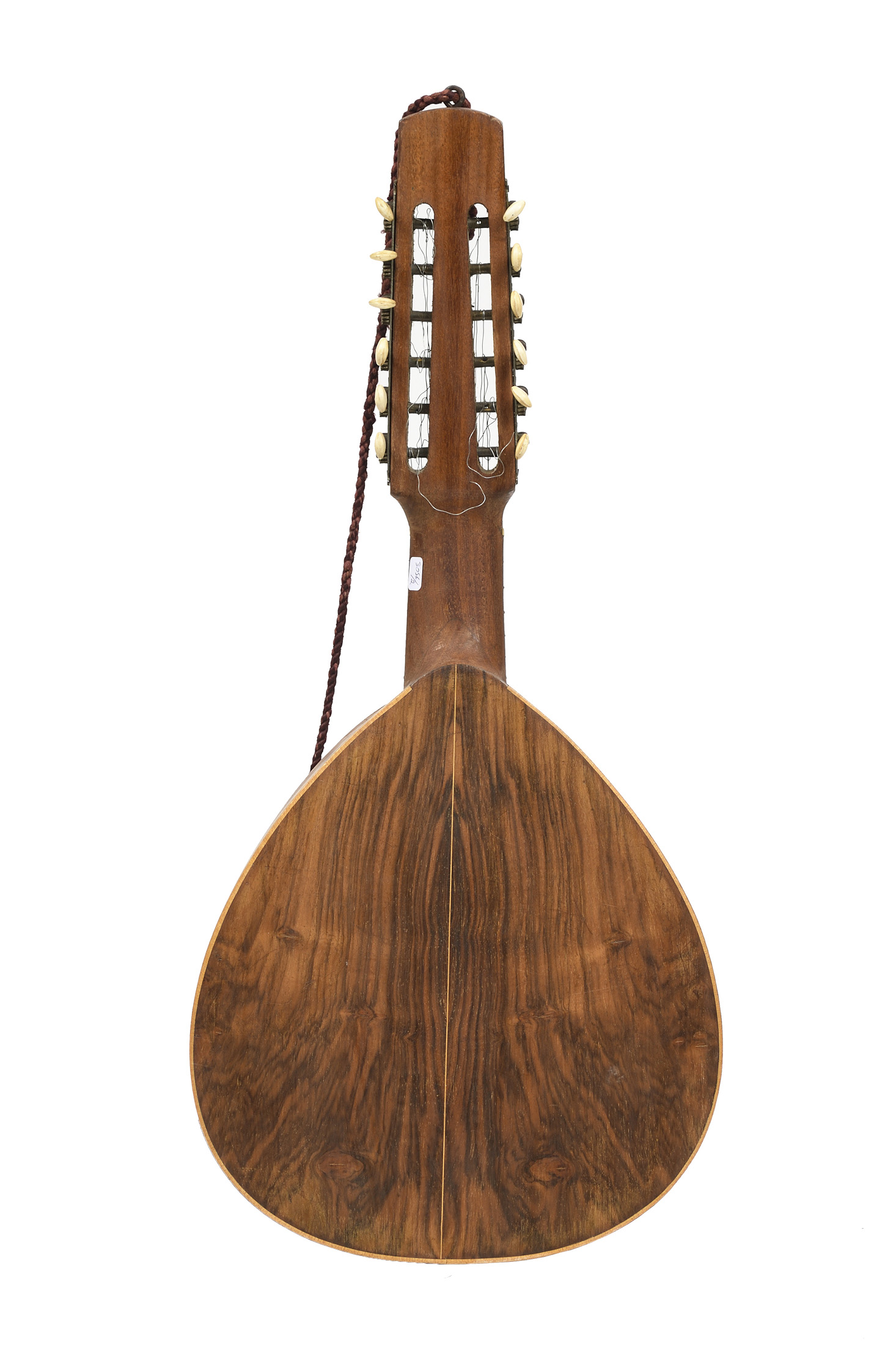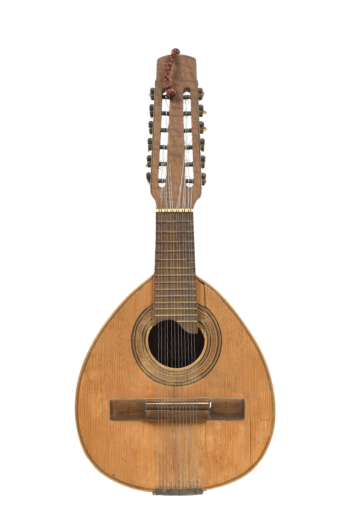 12 cordes. Fond de deux pièces. Cassure de table à restaurer. En l'état.