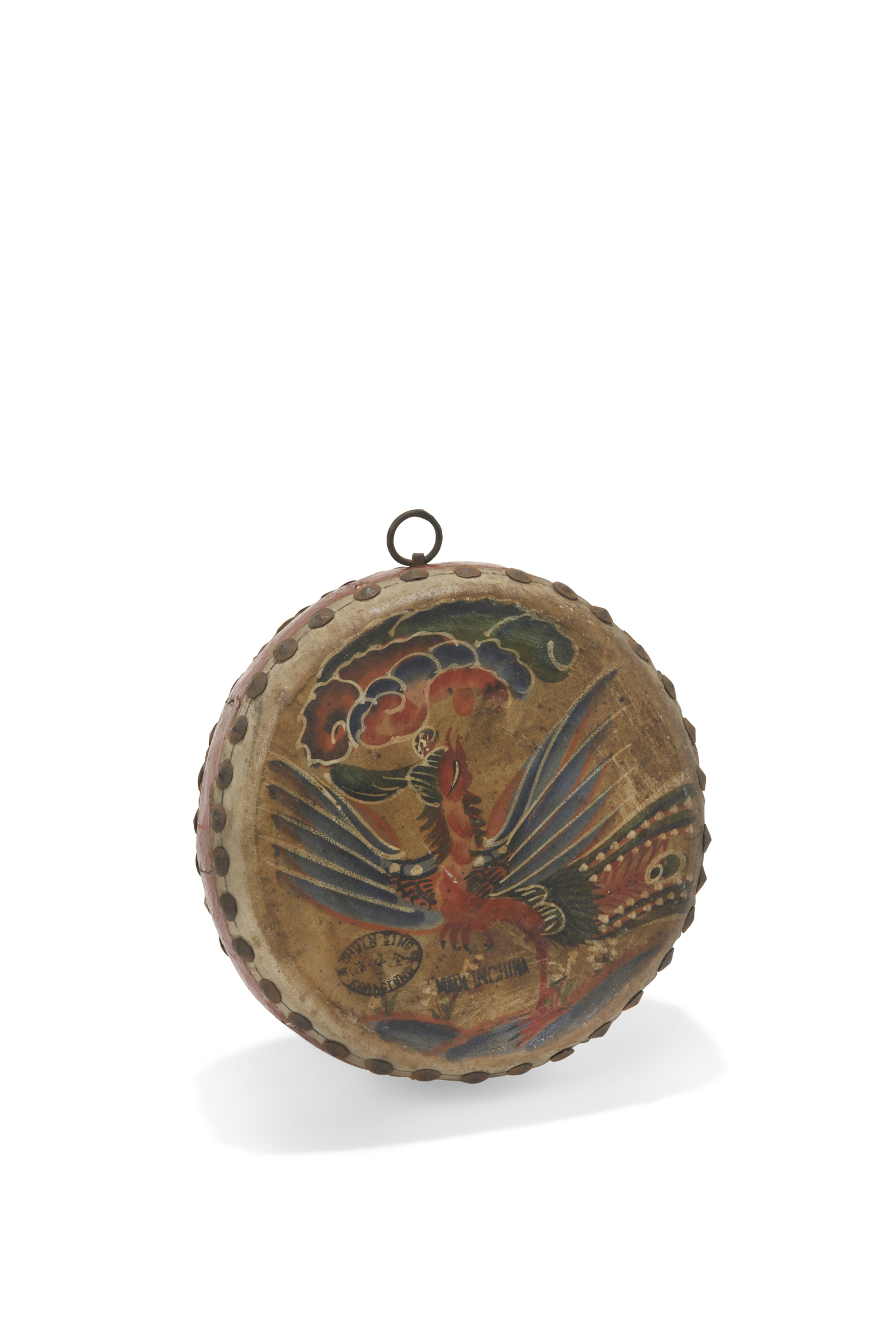 Tambour sur cadre. H : 10 cm. D : 26 x 26 cm.