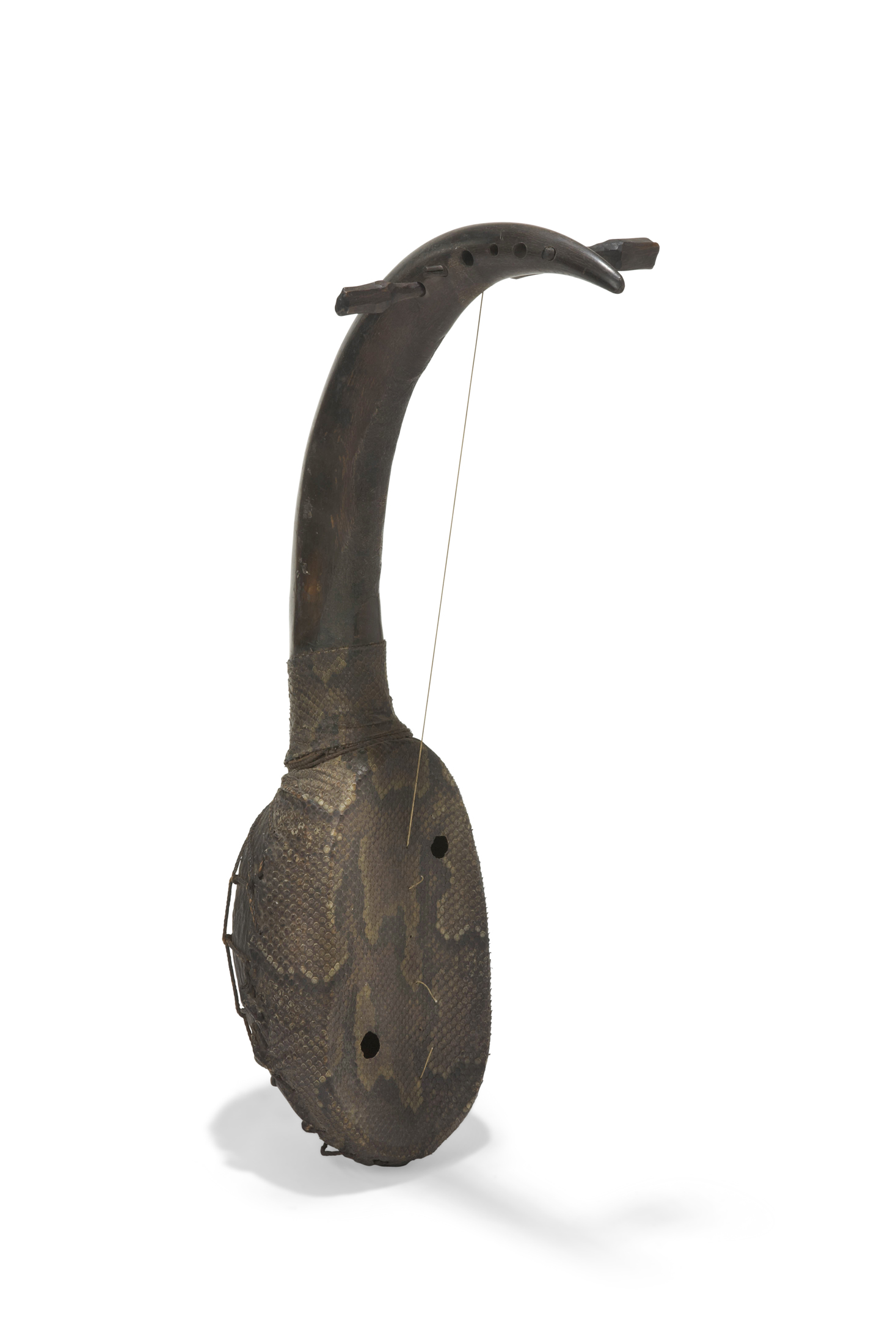 Harpe arquée Bois et peau de reptile