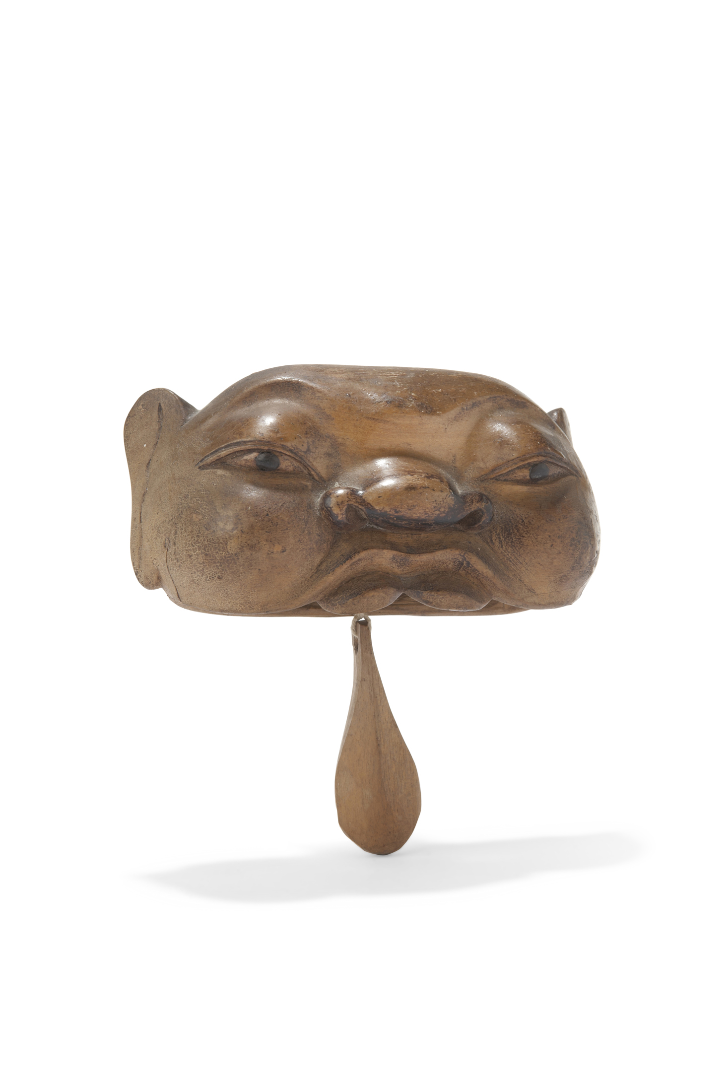 Petite cloche en bois en forme de tête sculptée. Indonésie Balhi. 14 x 8 cm