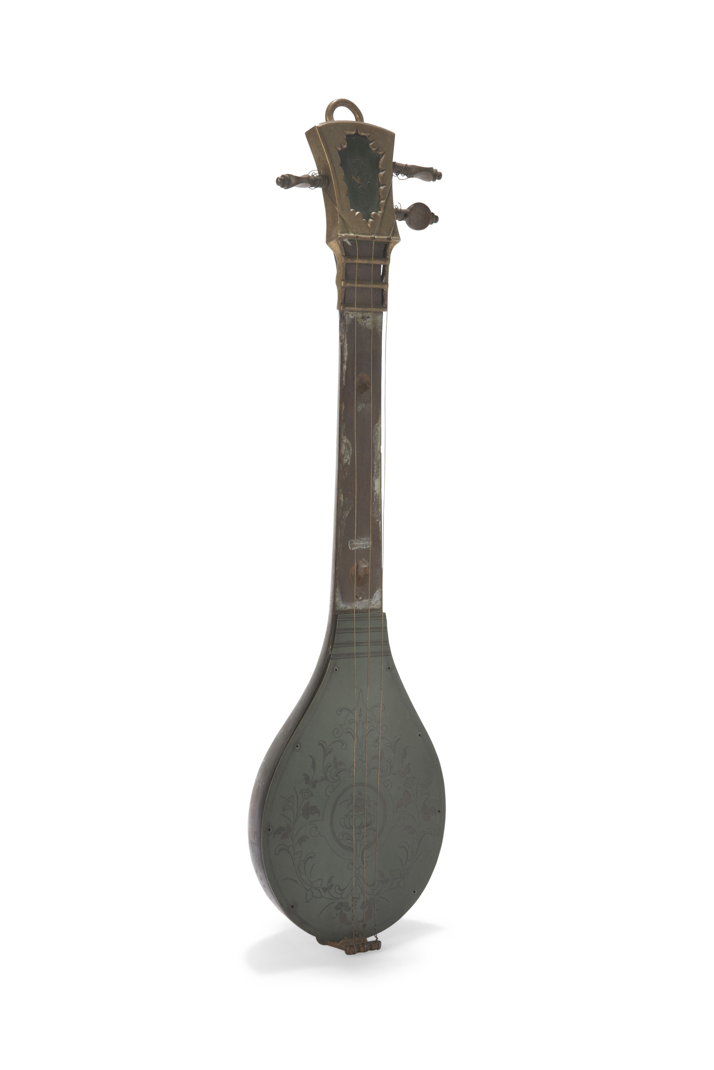 Luth en bois, table en peau peinte. 37 cm.