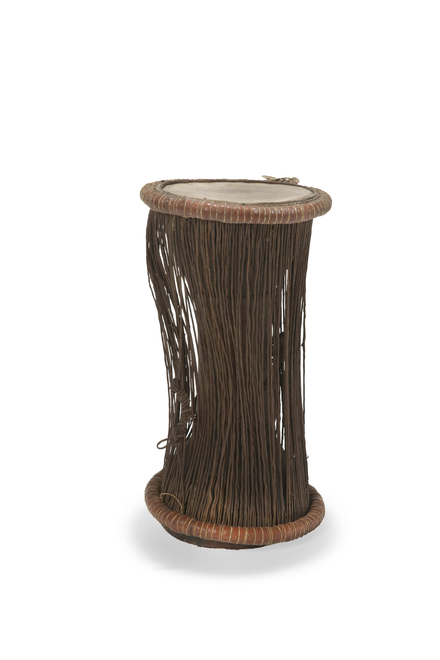 Tambour-sablier à tension variable. Mali. H : 43 cm. D : 23 x 23 cm