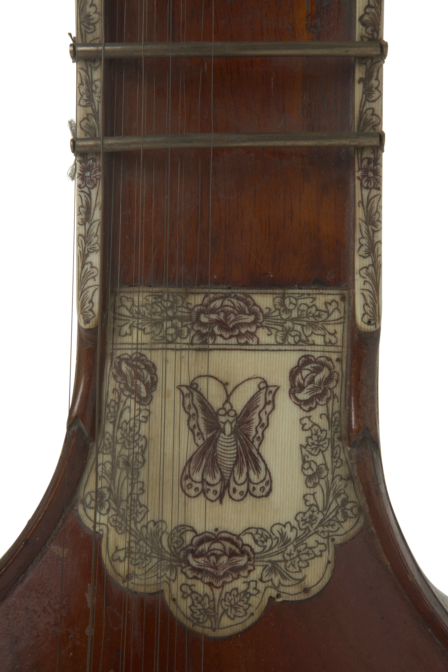 Sitar peinte de couleur rouge. L : 123 cm. Inde du nord.