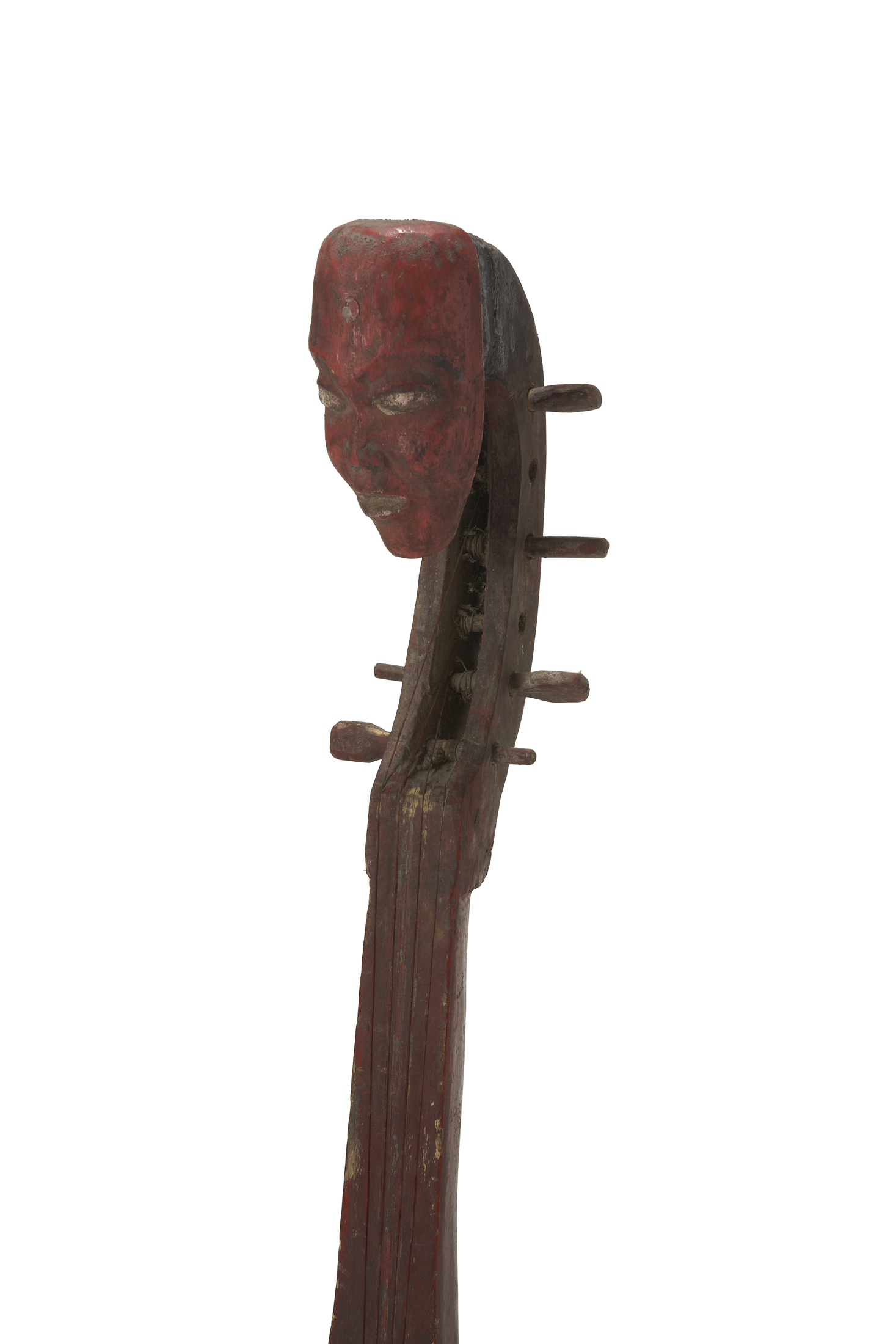 Hasapi. Bois sculpté, laqué rouge noir et blanc