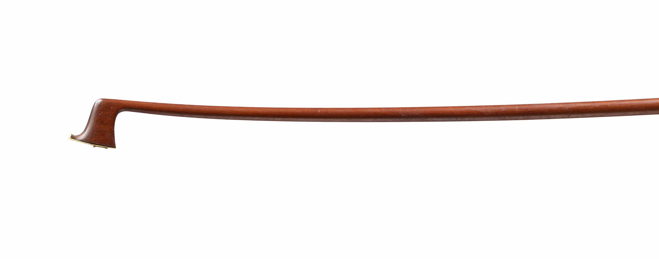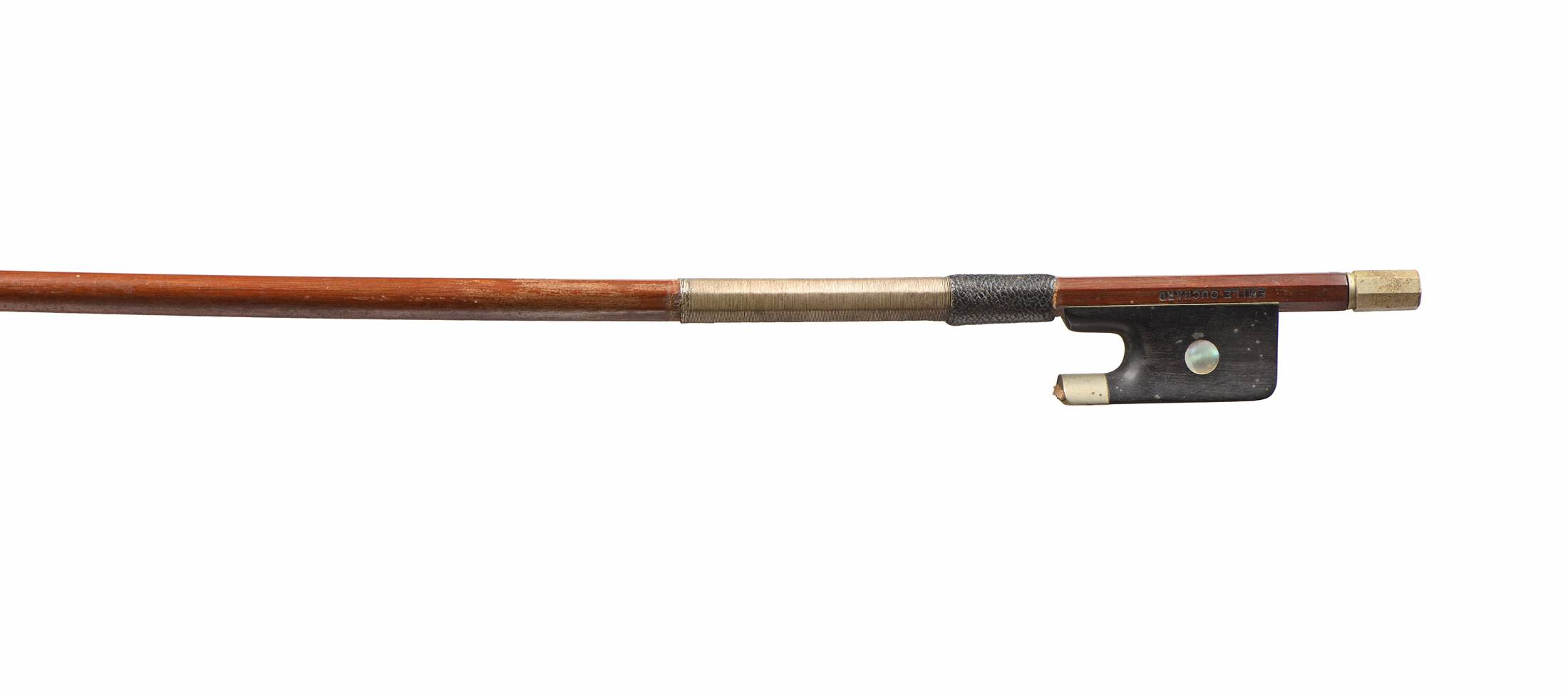 portant la marque au fer "EMILE OUCHARD". Baguette ronde en bois de pernambouc. Hausse ébène à talon rond, monté maillechort. léger fel au pan de la baguette.