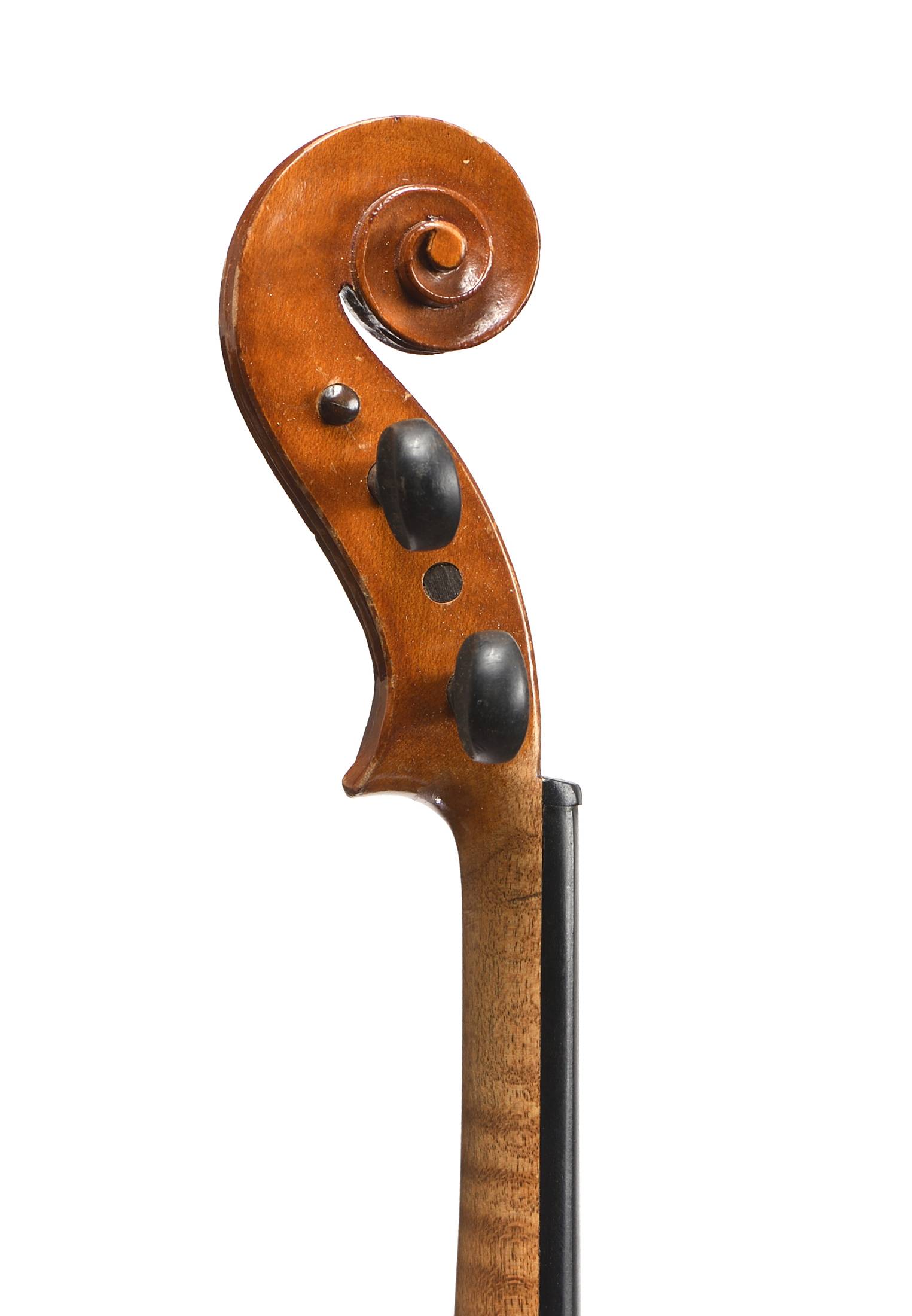 dont il porte la marque au fer. Fond d'une pièce en érable. Vernis brun doré. 363 mm.