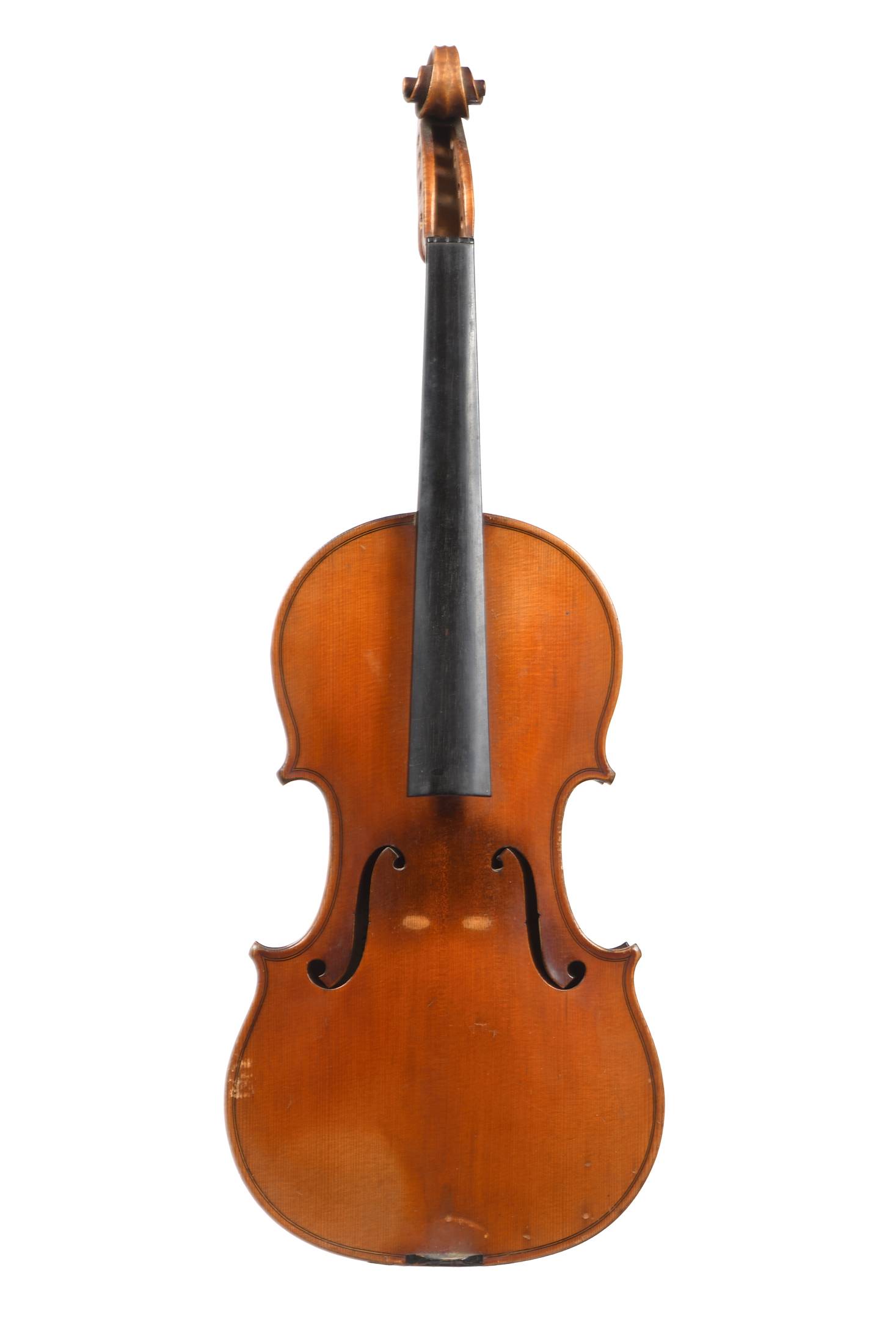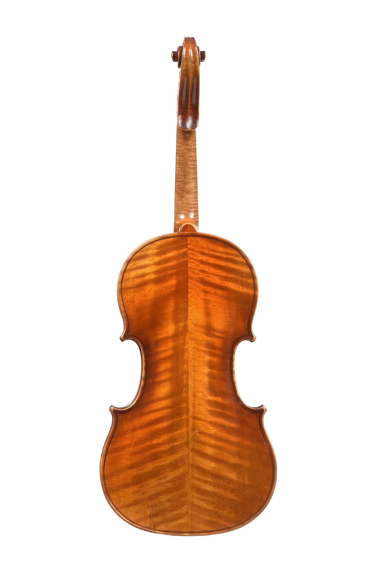 portant une étiquette "J.E.ZANI". Fond de deux pièces en bel érable. Vernis brun orangé sur fond doré. 359 mm.