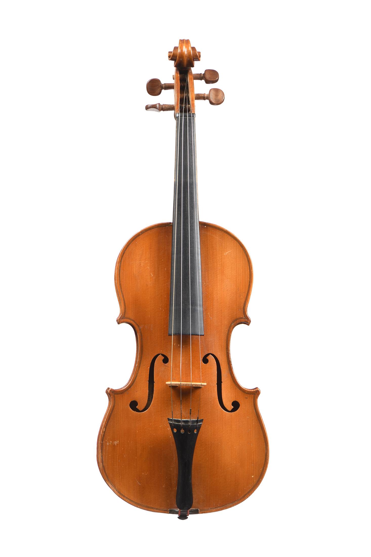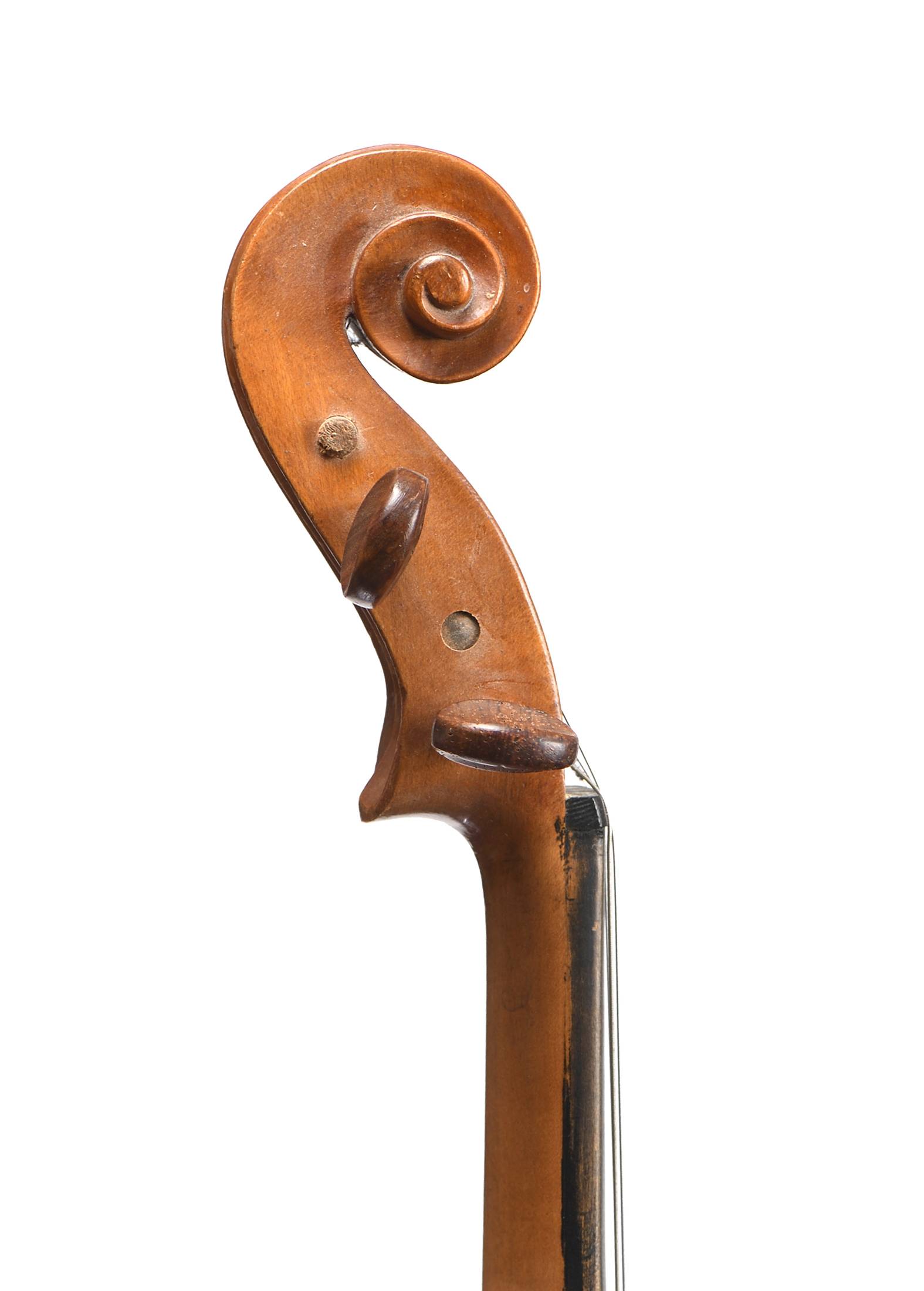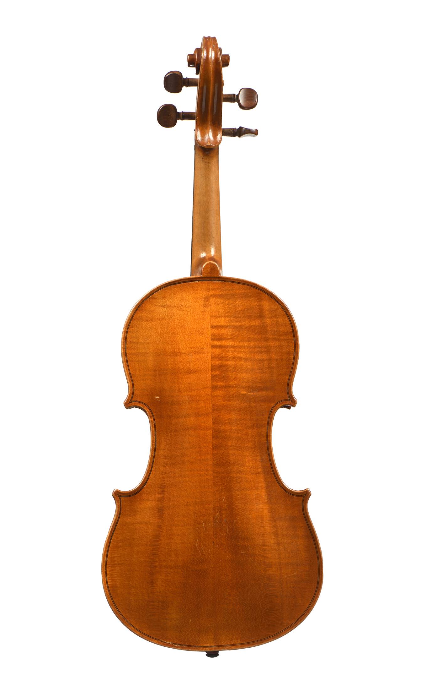 portant une étiquette "Copie de Stradivarius... 1721". Fond de deux pièces en érable. Vernis brun miel. 357 mm. Avec archet.
