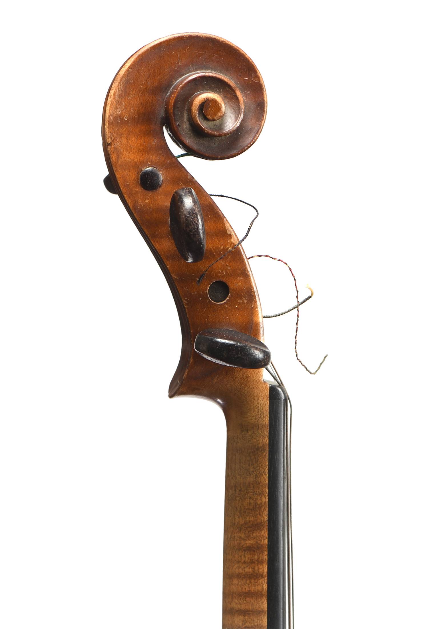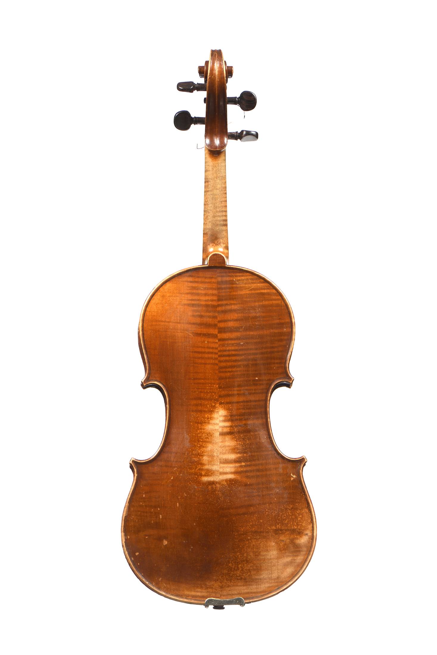 portant une étiquette "Fait à Mirecourt. Numéro 407, par le maitre luthier Amedée Dieudonné. 1949.". Fond de deux pièces en érable. Vernis brun sur fond doré. 361 mm.
