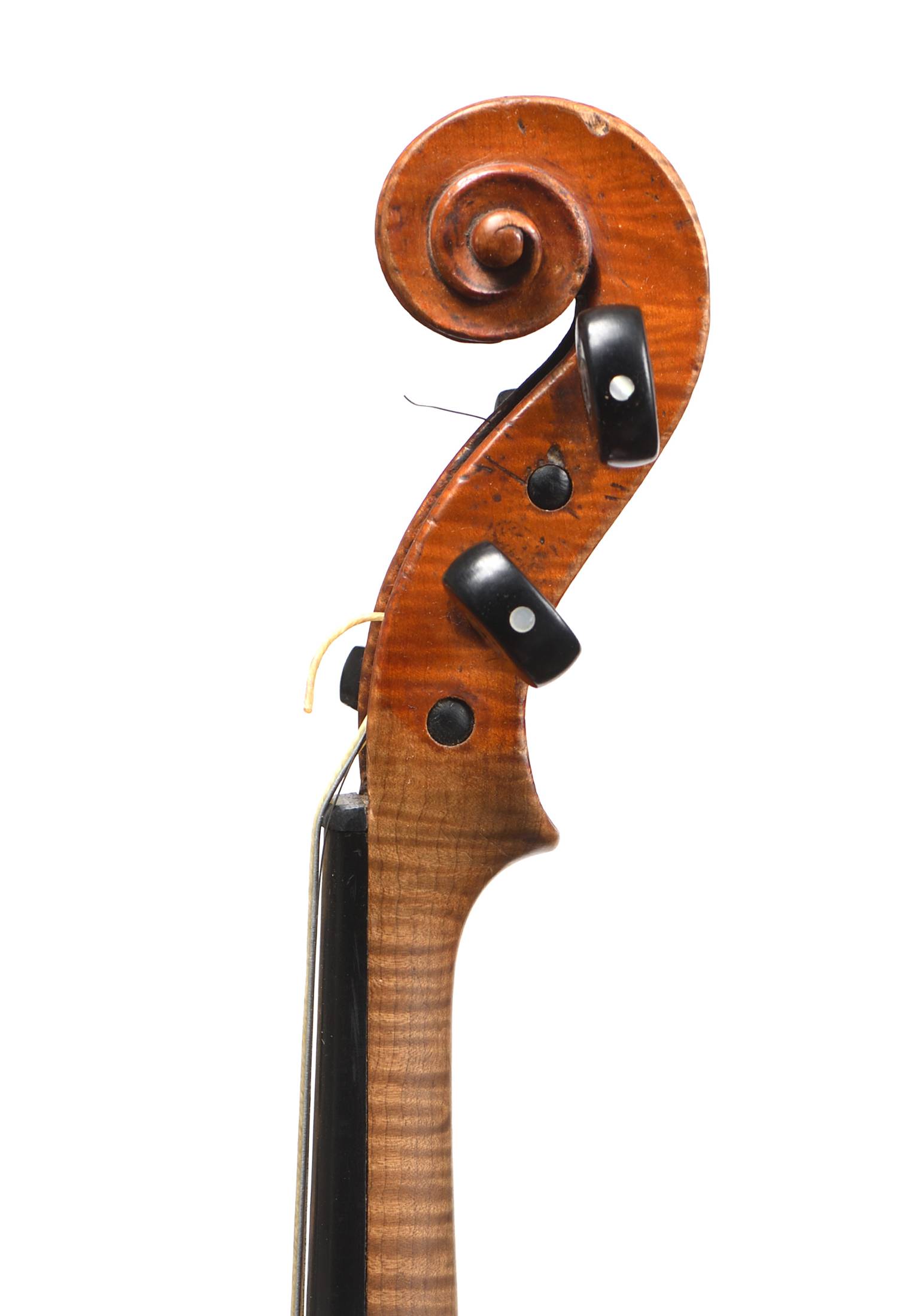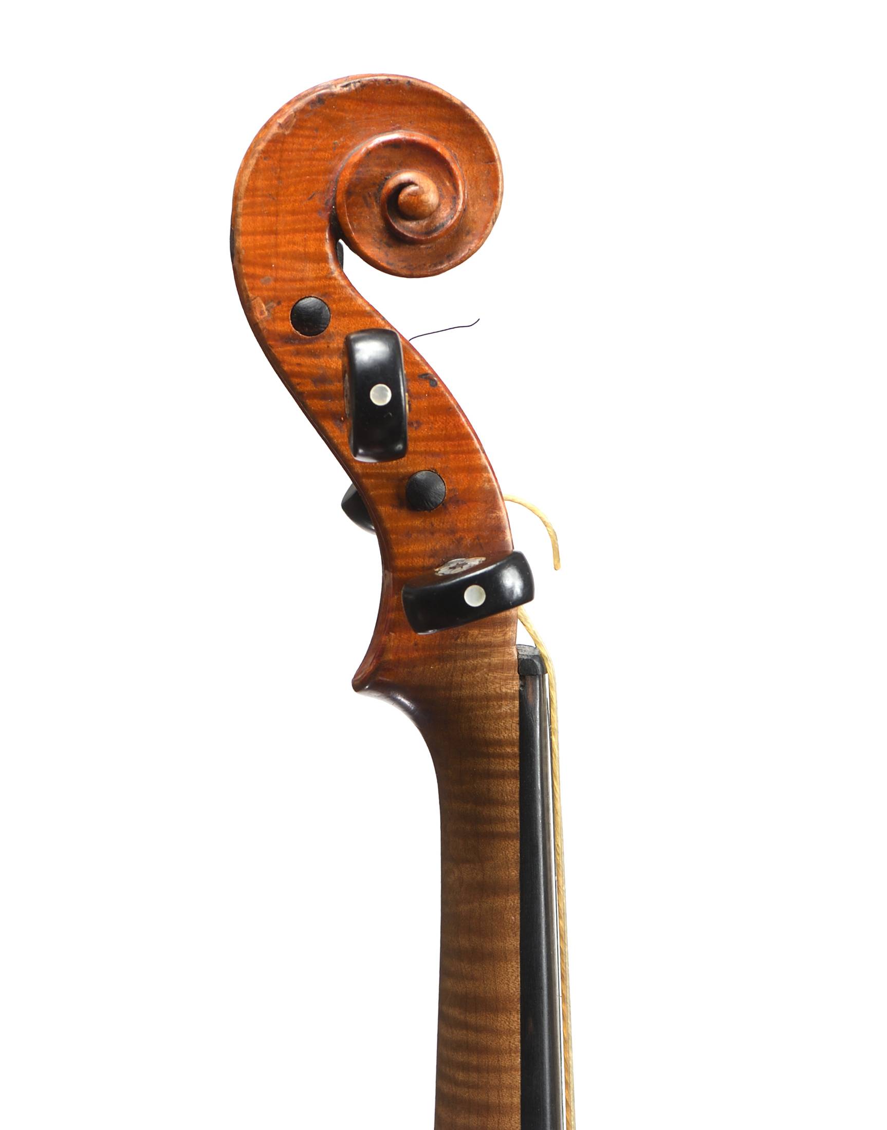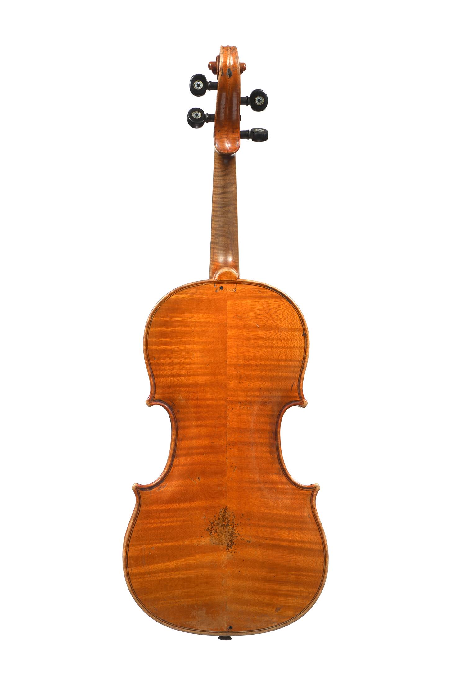 dont il porte la marque au fer "LAMBERT A PARIS", sous le talon du manche. Instrument du XIXe. Fond de deux pièces en érable. Vernis brun orangé doré. 359 mm.