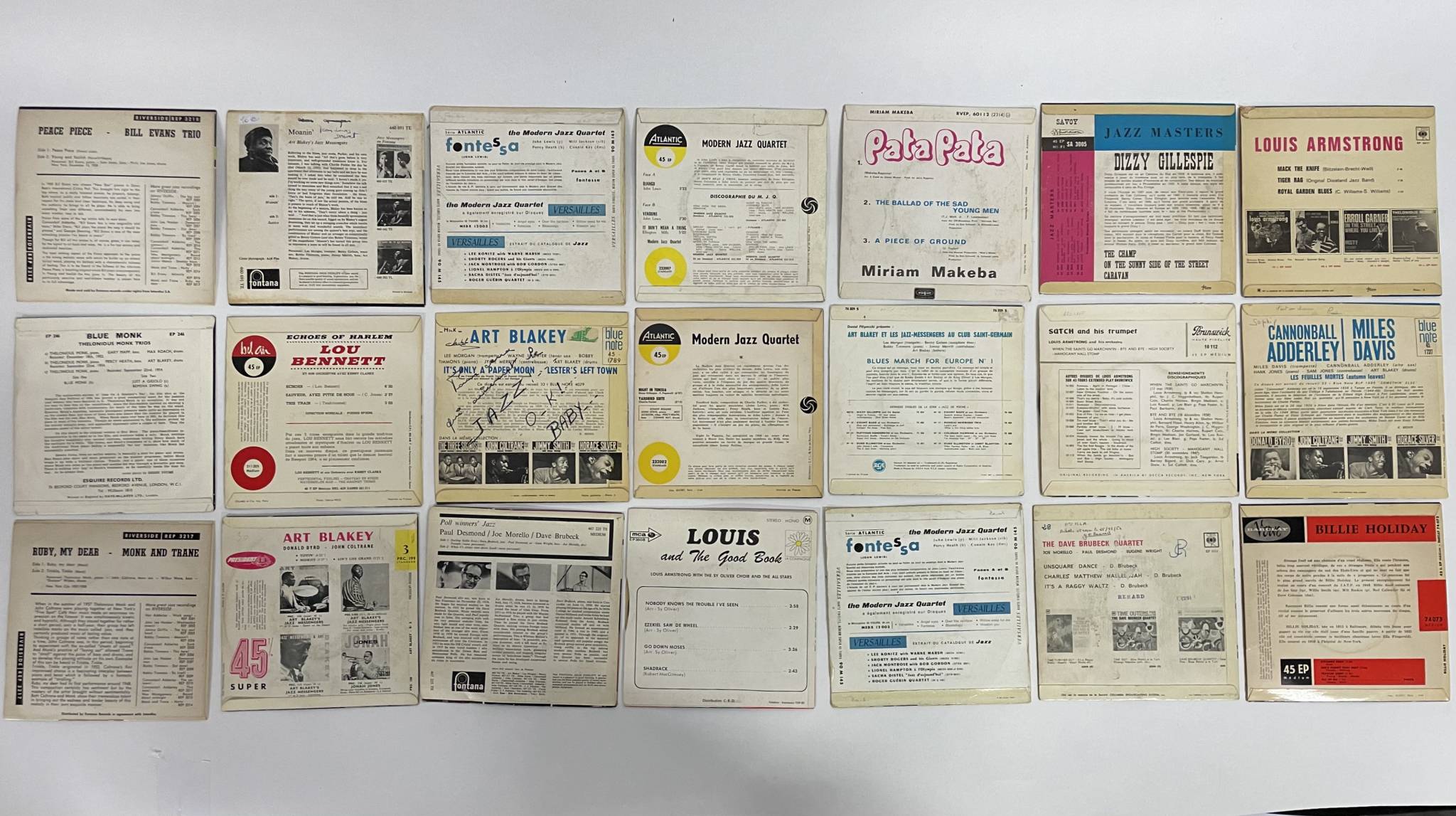 Bill Evans Trio, Thelonious Monk, Billie Holiday, Miles Davis, Louis Armstrong, Art Blakey & Dizzy Gillespie.