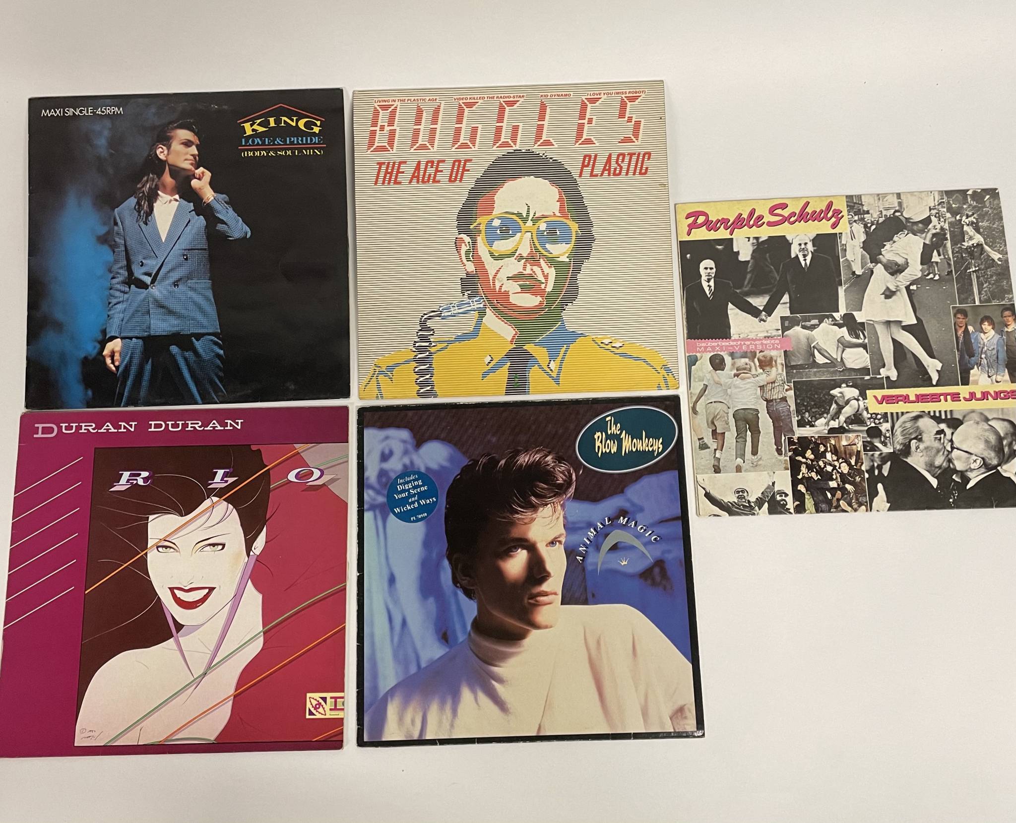 Ensemble de 17 vinyles 33 tours dont : Philip Bailey, Paul Hardcastle, Wham!, Duran Duran, Pet Shop Boys, Buggles et Naomi Campbell