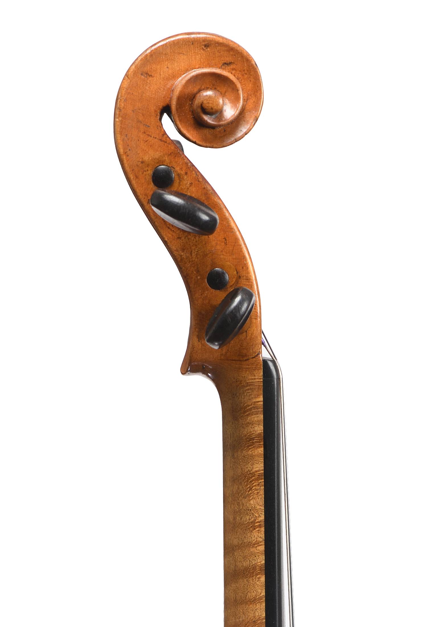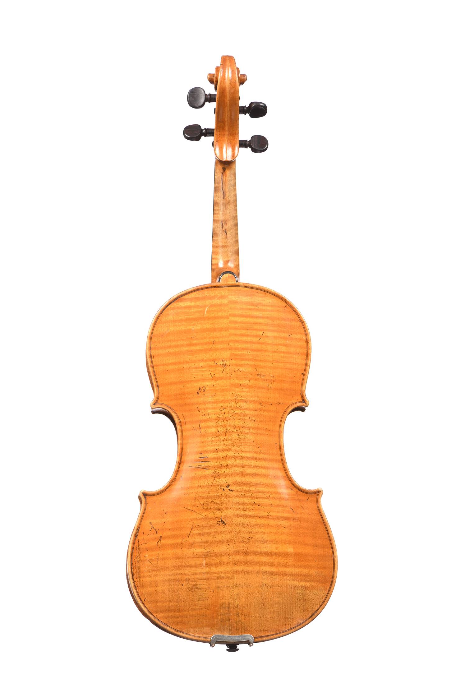 portant une étiquette apocryphe "Tommaso CARCASSI 1769". Fond de deux pièces en érable. Vernis brun doré. Table en épicéa aux pores fins, réguliers. 361 mm.