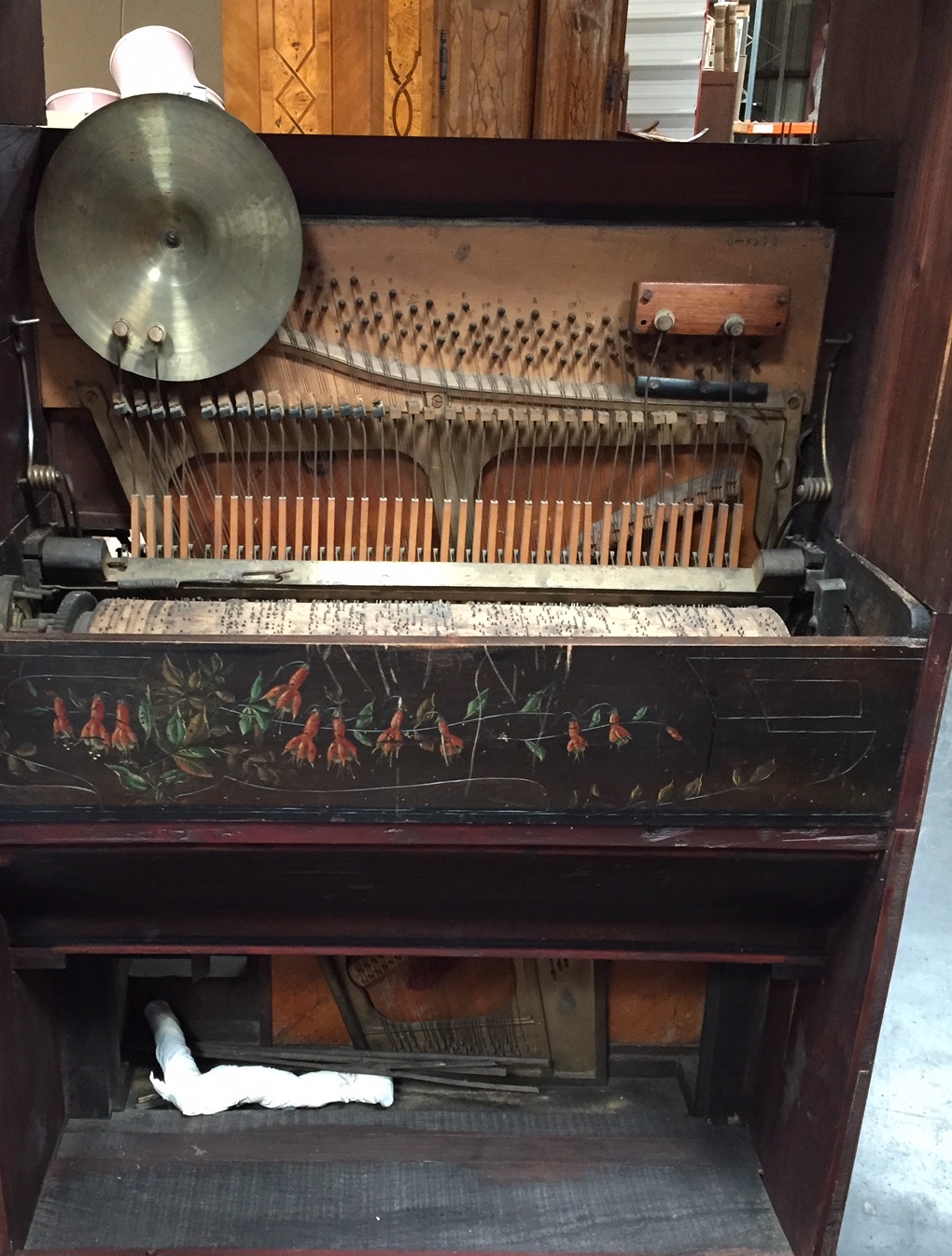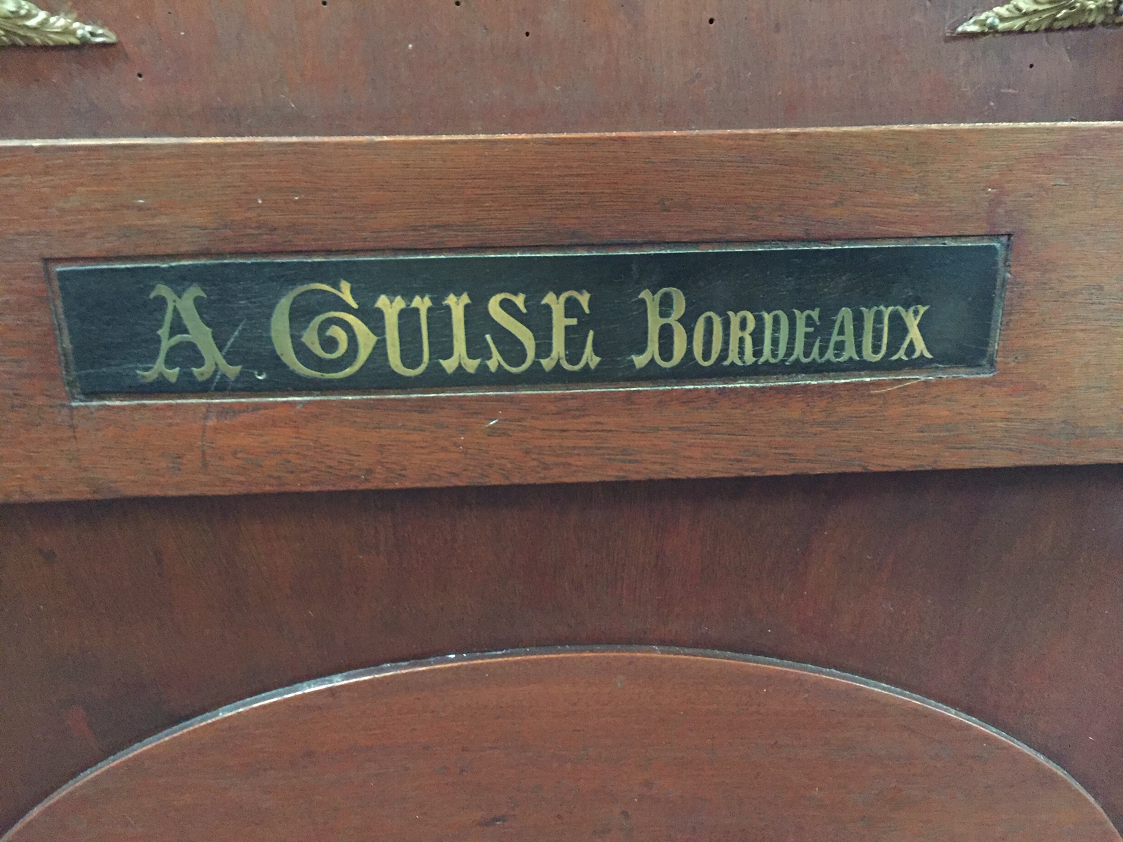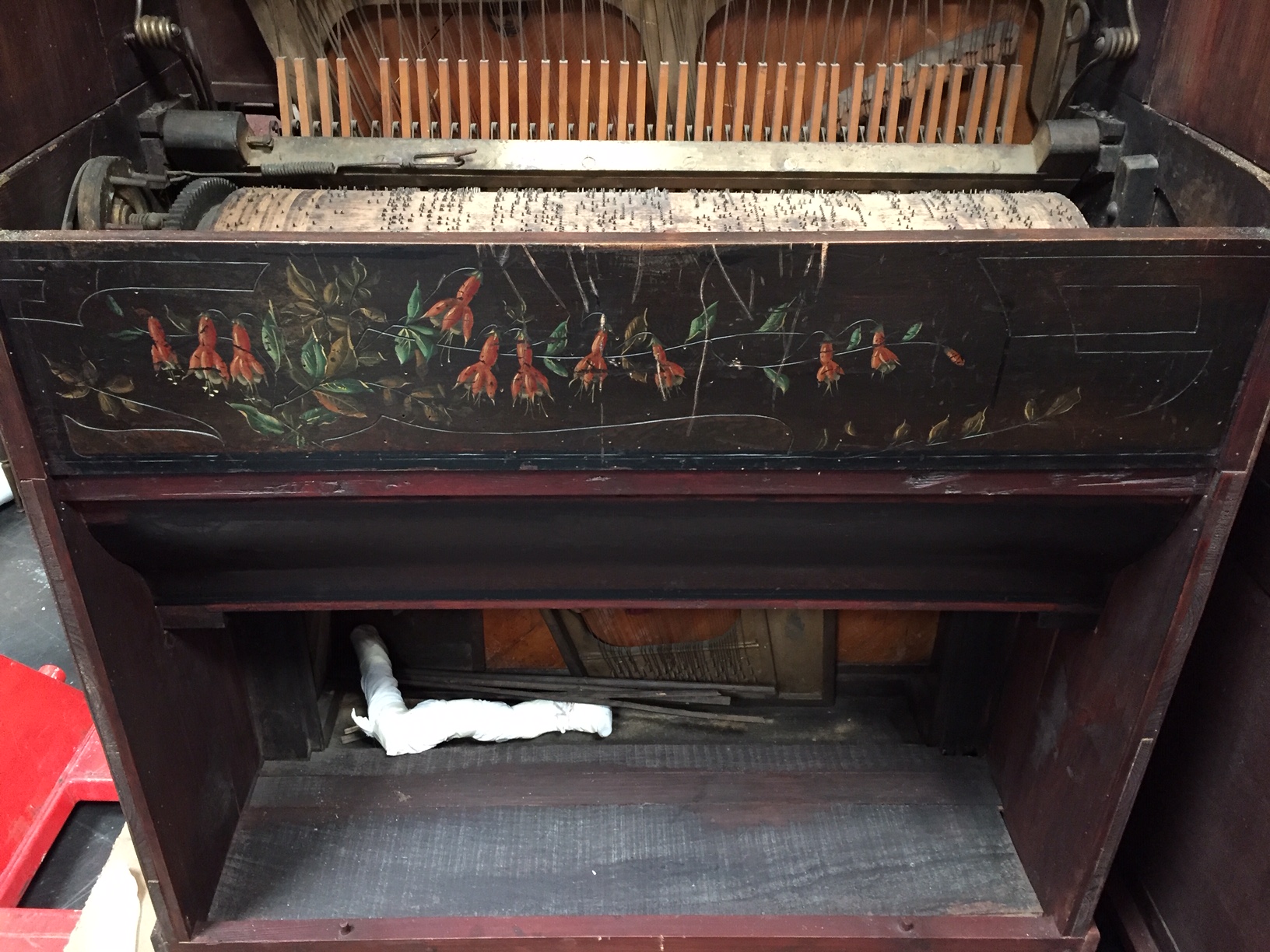 Intéressant piano mécanique " A GUISE à BORDEAUX". 10 mélodies sur le cylindre. Numéroté: 0-9572. L'ensemble est à restaurer.