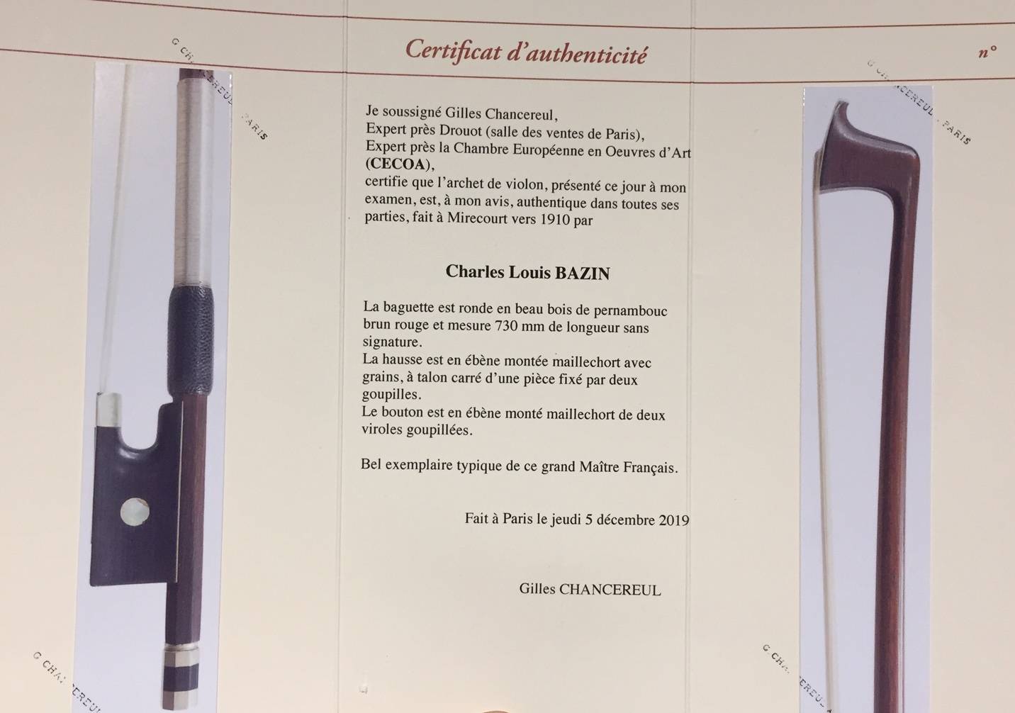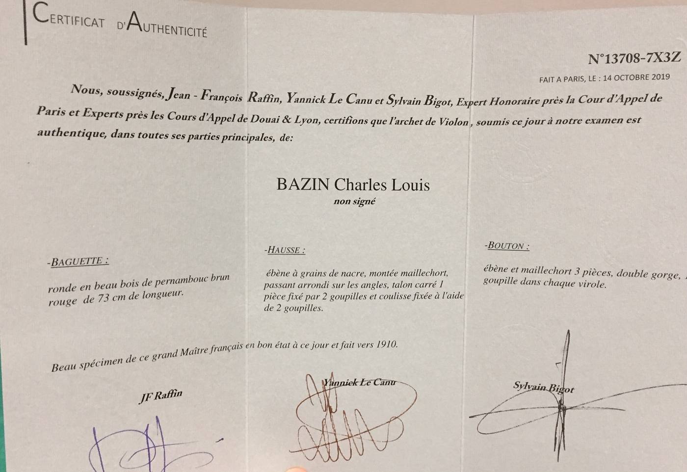 Avec deux certificats de Gilles Chancereul et Jean-François RAFFIN.