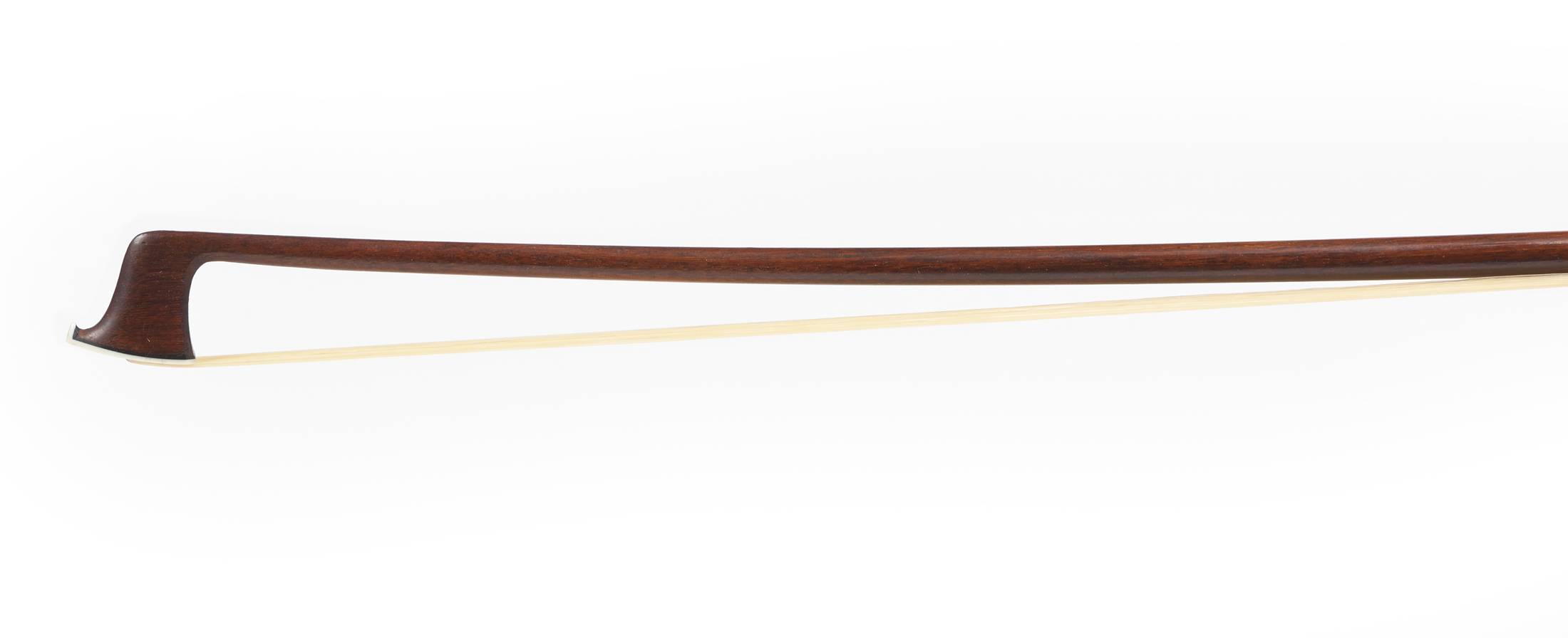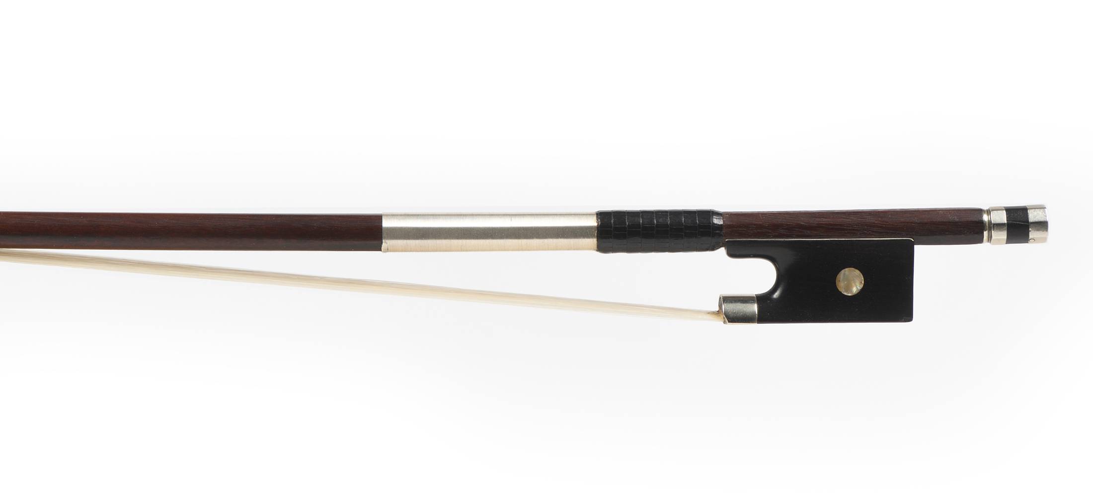 Baguette ronde en bois de pernambouc. Hausse ébène, monté maillechort.