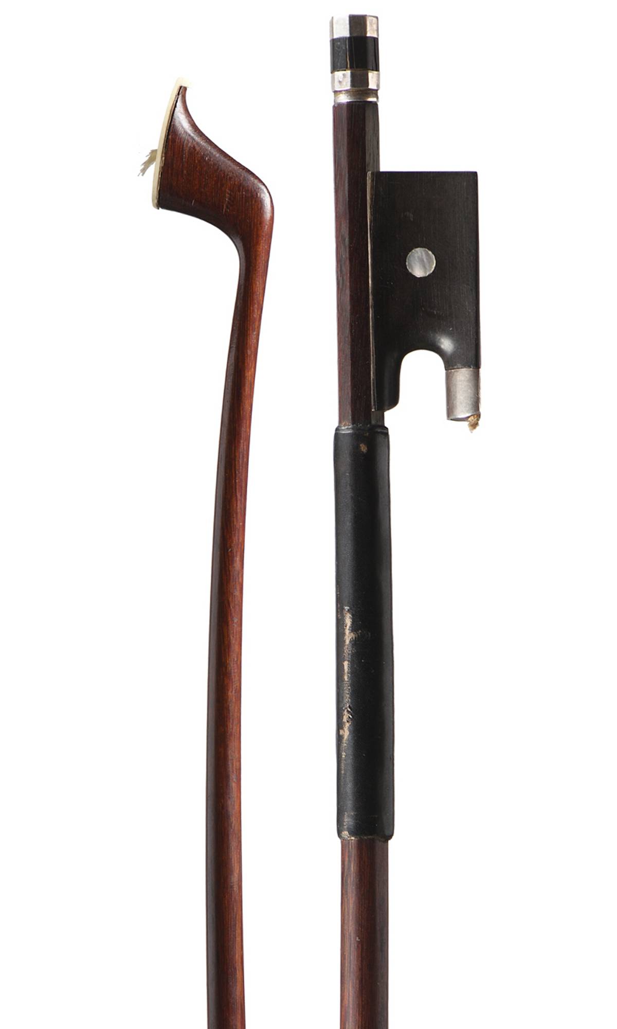 Baguette ronde en bois de pernambouc. Tête de requin. Hausse ébène, monté argent.
